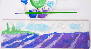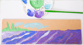 Dip the brush into some paint and then start pressing down on the sign. We chose a lavender farm and blue sky.