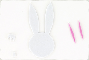 Start by cutting out the shape of your bunny's head, teeth and hair from craft foam, along with any accessories you want to give them. Don't forget to cut out two thin pink strips for the ears, and a little pink triangle for the nose.