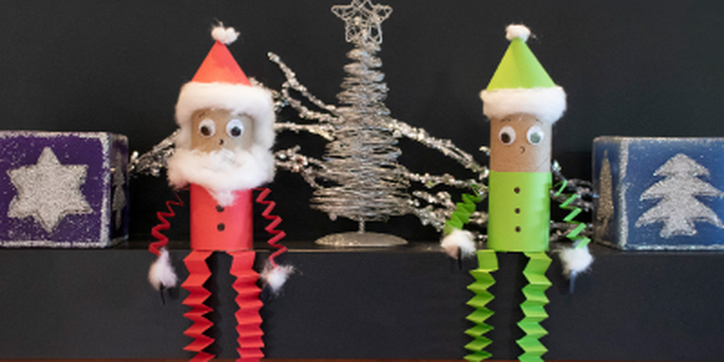 Create some cute Christmas characters with recycled cardboard rolls and coloured paper!
