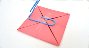 Fold the square piece of paper in half, then half again. Fold each corner into the middle.