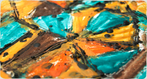 Abstract encaustic painting, created using hot wax and Micador Oil Pastels. Encaustic Painting, also known as hot wax painting, involves using heated wax to which coloured pigments are added, before being applied to a surface to dry.