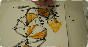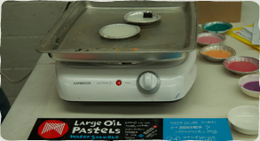 Mix oil pastels into melted wax to create 'hot wax' encaustic paintings