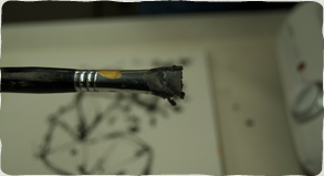 Once the oil pastels have fully integrated into the wax it is time to start painting. Turn the heat down but keep the temperature high enough that the wax stays liquid. You can use any tool to apply the wax to your surface – a wooden skew, old brushes, metal bristles – anything that can hold the waxy pigment.