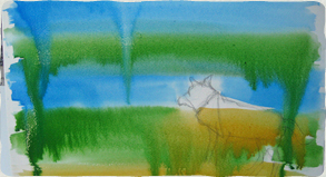Use a dark green watercolour to add some marks at the top to give the impression of foliage. Stand the paper up again vertically and let it drip.