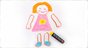 Start drawing on your paper with your Micador jR. Easy Wash Mega Oil Pastels. Try drawing friends, family or even your pets! Draw the head and body connected, but leave the arms and legs separate.