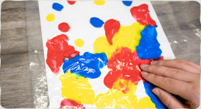 Place a piece of paper, with blobs of paint into a zip-lock bag.