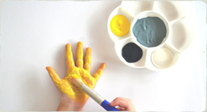 Use your paint brush to paint on your child’s hand. Spread paint evenly over your child’s hand for full coverage.