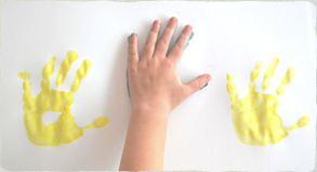 Guide your child’s hand to the canvas. Gently press down to make sure you leave the entire handprint before lifting the hand gently away. Ensure that your child keeps their hand still on the paper to avoid smudging of the handprint. You will need to reapply paint in between each hand print.