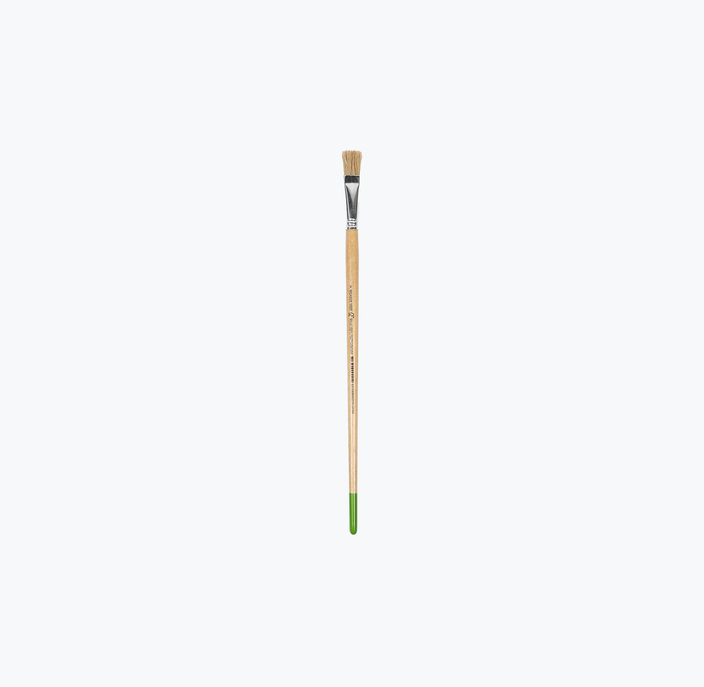 Economical, long handled bristle brush for oil, acrylic, poster colour and general purpose work. Suitable for beginner and student painters. Durable and great for applying paint smoothly and evenly. Long handle is ideal for paintings created on an easel.