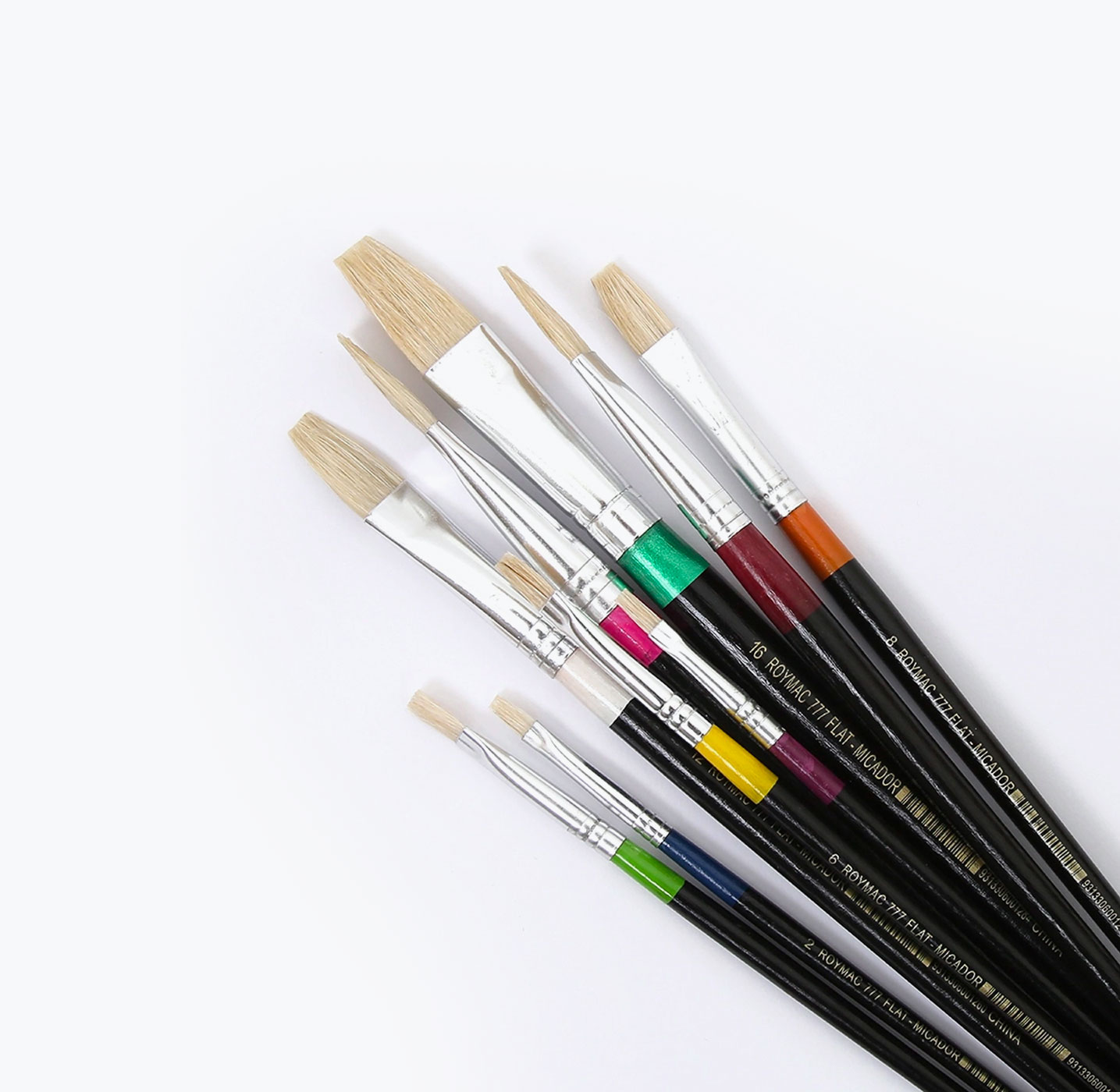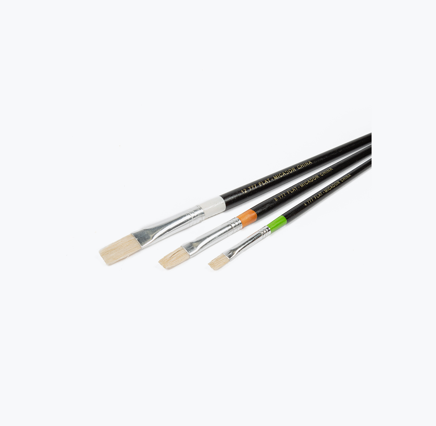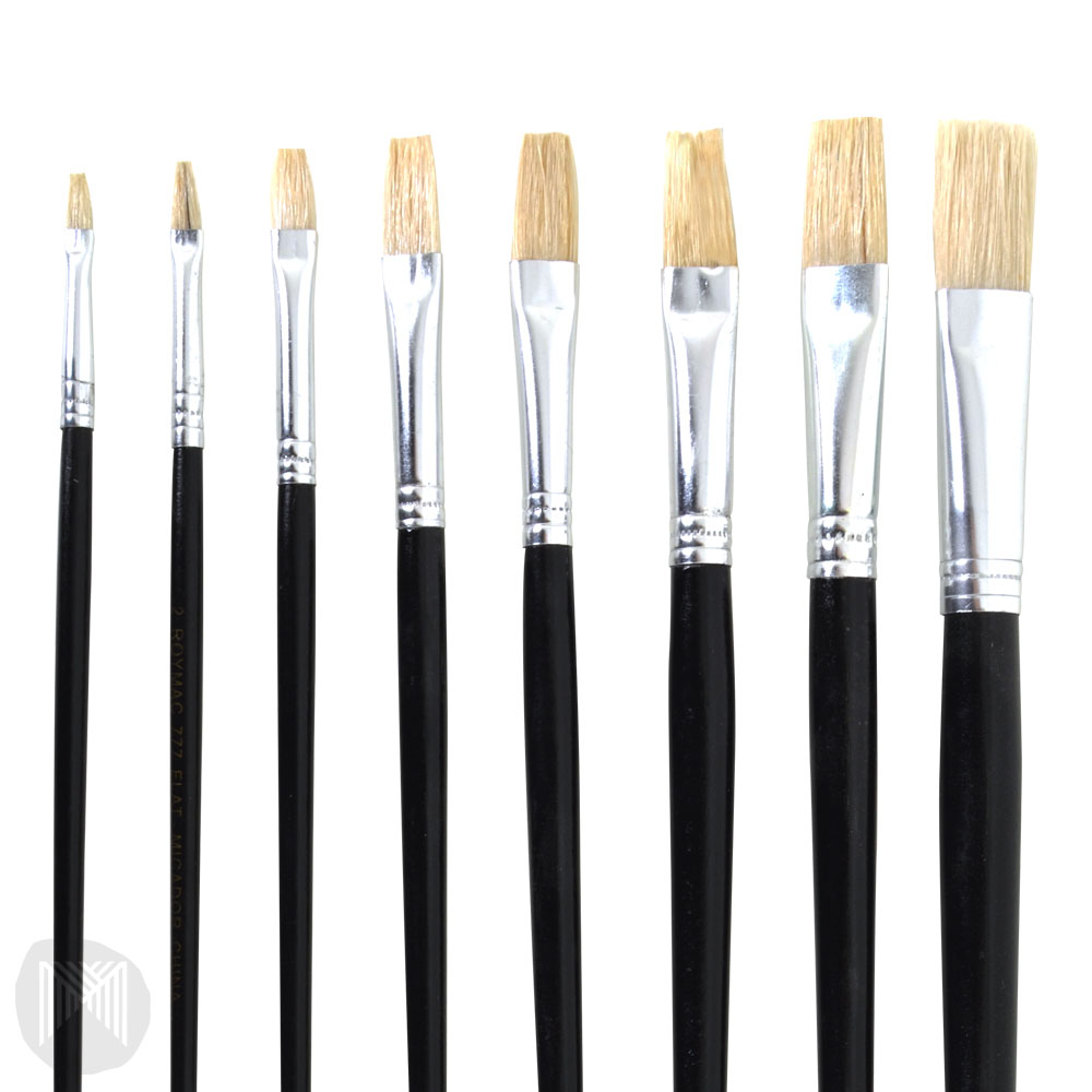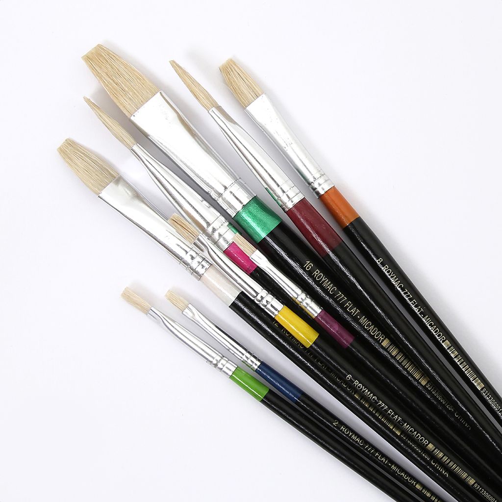 - Student quality, flat hog bristle brushes ideal for poster colour, oil, and acrylic painting