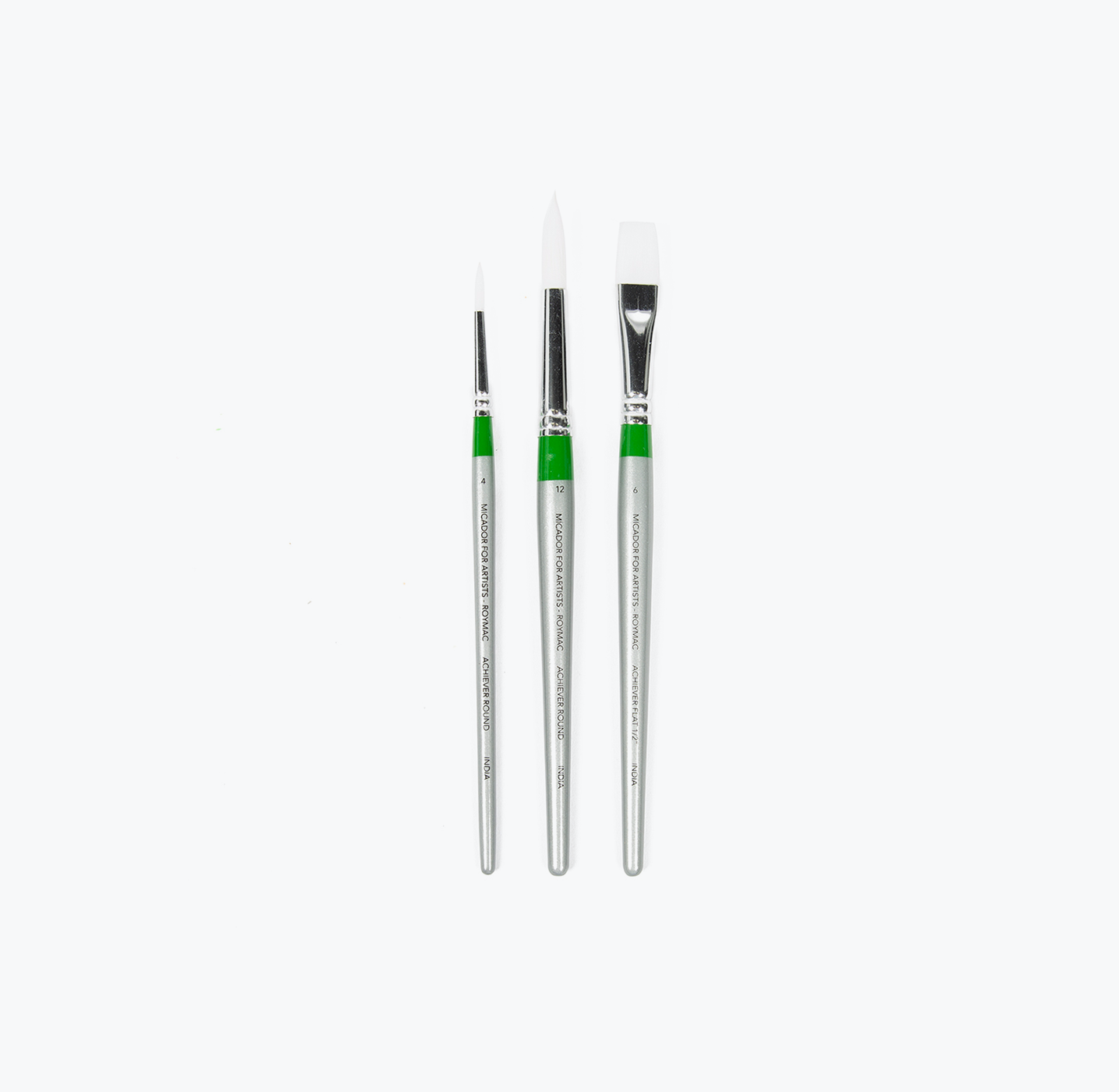 - 5 Pack (Round, Size 4, 8 & 12 and flat, size 4 (1/4 in) and 12 (1 in)