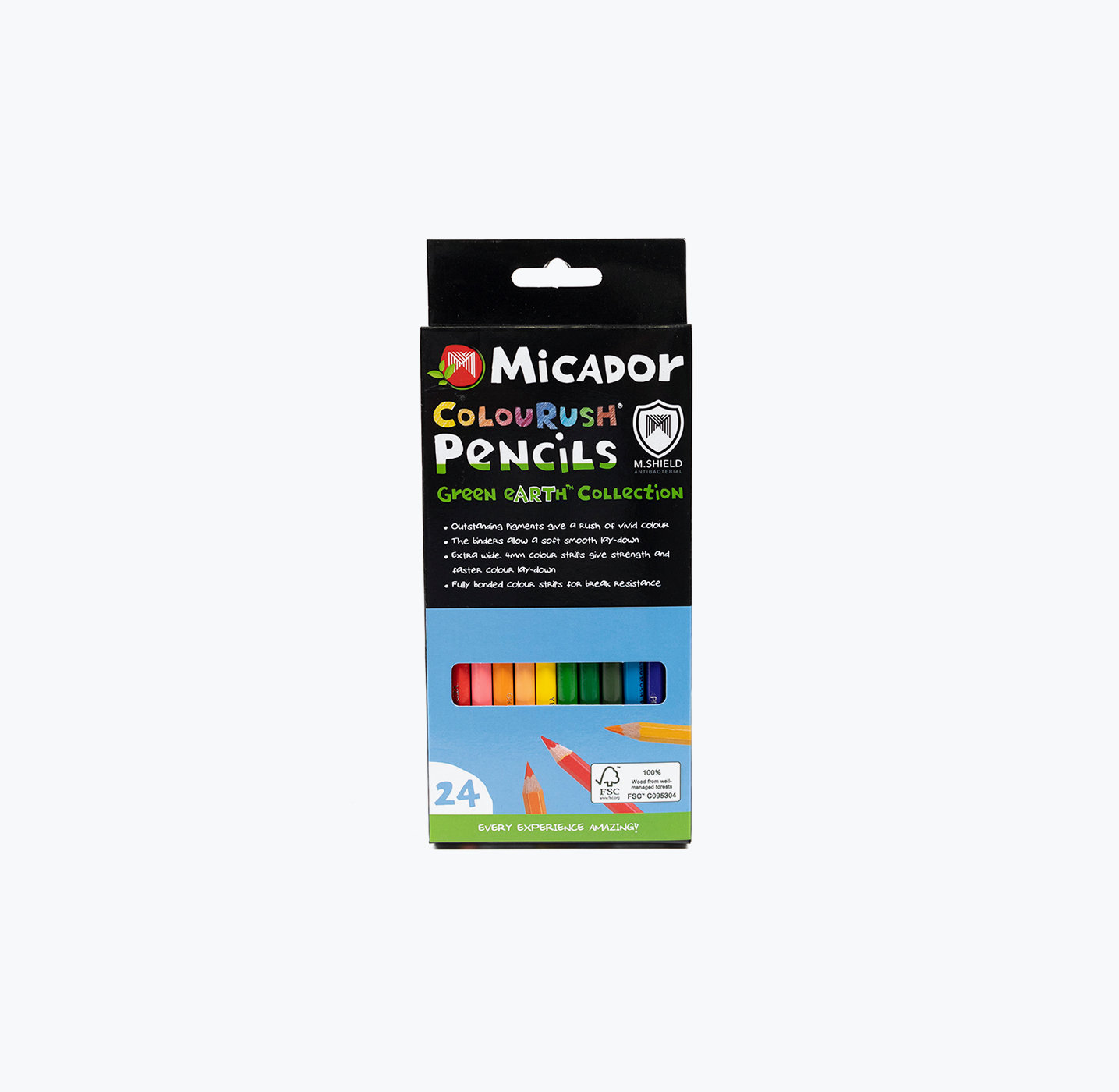 These excellent quality colour pencils have a 4mm colour strip for fast colour lay down, and are fully bonded for break resistance making them great value. Colours are vibrant on paper and are great for drawing, colouring or sketching. Made with FSC™ 100% certified wood and part of Micador's green eARTh collection. This product also carries the M.SHIELD which signifies it includes disinfectant additives proven to kill bacteria. Available in various pack sizes to suit all requirements.