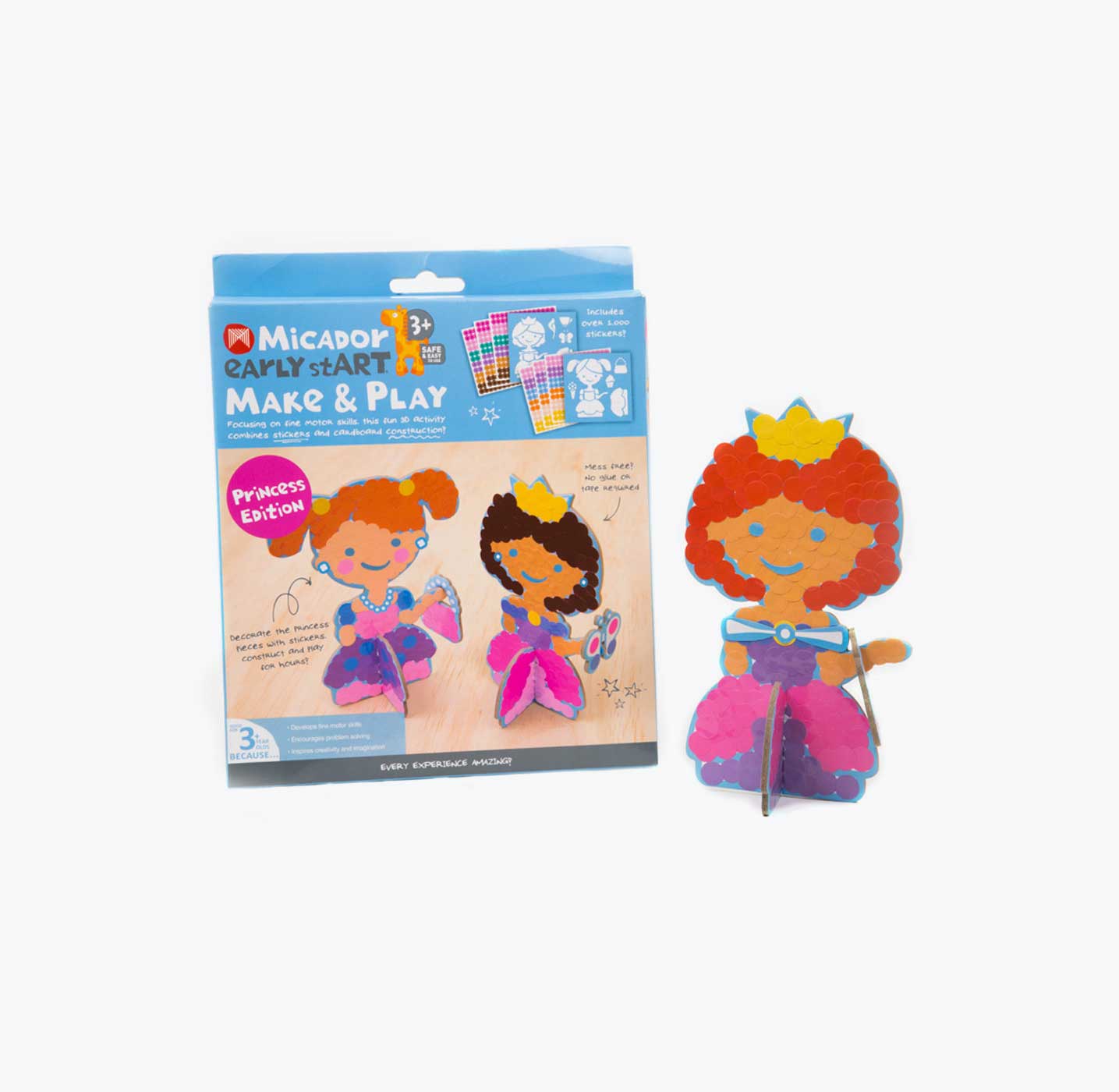 This fun, engaging and developmentally beneficial activity is specially designed for children 3+ years. Focusing on fine motor skills, this 3D activity combines stickers, cardboard, construction and hours of play! Includes pop out cardboard characters and over 6,000 stickers for an educational and fun craft activity. Pre-cut slots make assembling easy - no messy glue or tape required! Encouraging the development of coordination, imagination and dexterity, Make & Play is ideal for growing minds.