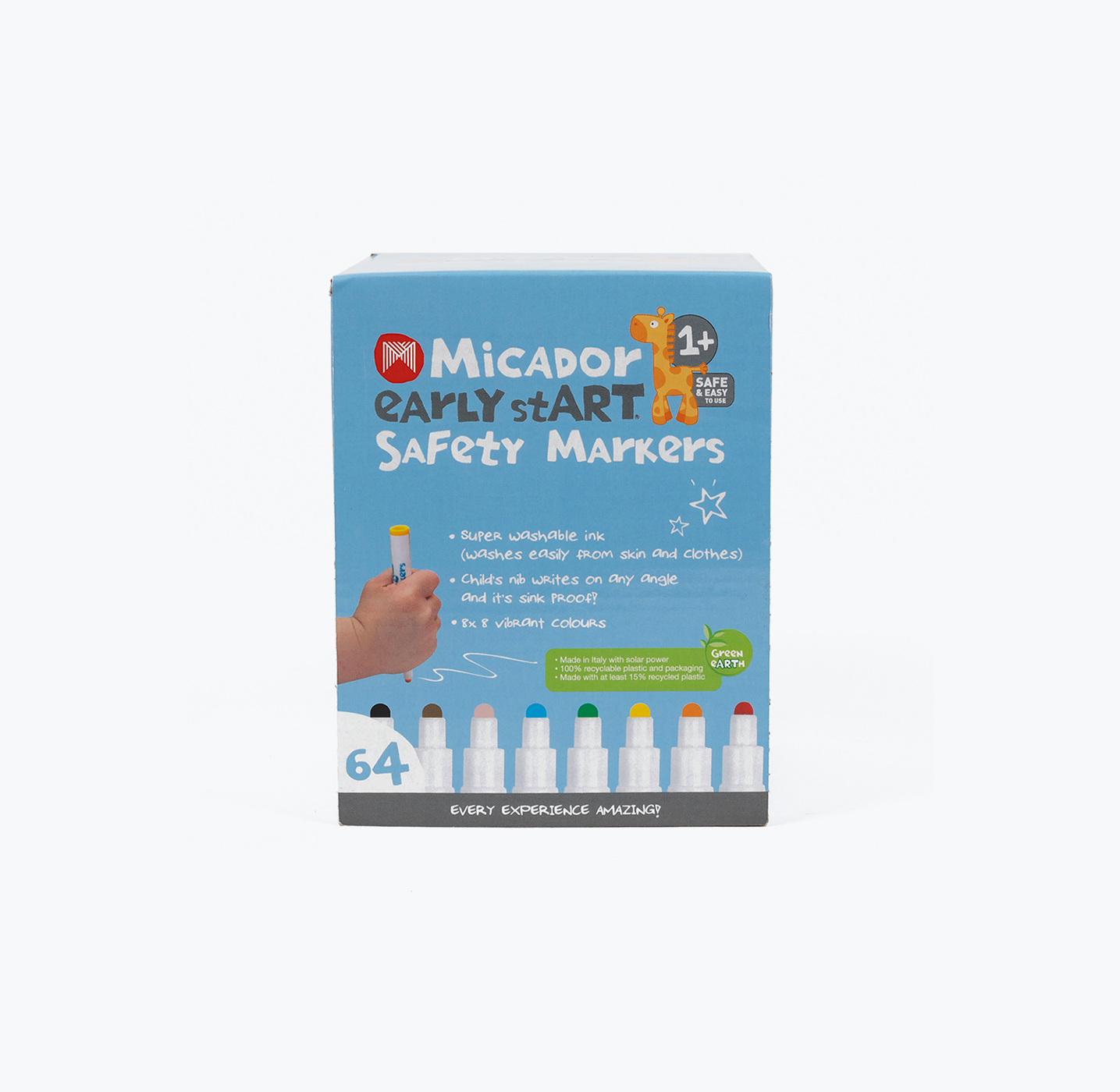 Let growing minds develop their creativity with early stART Safety Markers. Designed specifically for children as young as 1 year old, the markers are safe, easy-to-use and contain Super-Washable Plus ink (that stays bright on paper!) for mess-free play. Markers have secure end caps and ventilated safety lids for parents’ peace of mind and a child safety nib that is virtually indestructible. Available in a pack of 8 or a handy class pack of 64, ideal for the art room, parties or home!