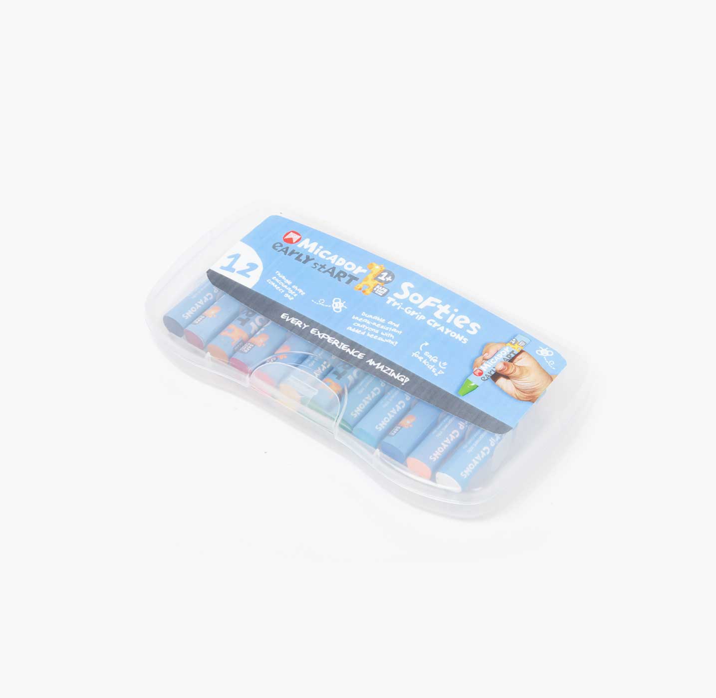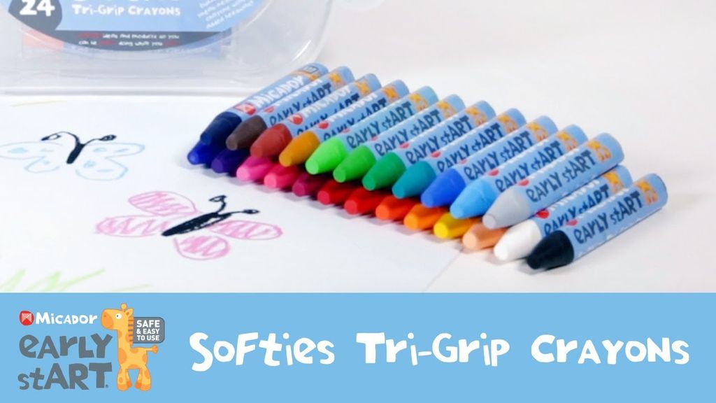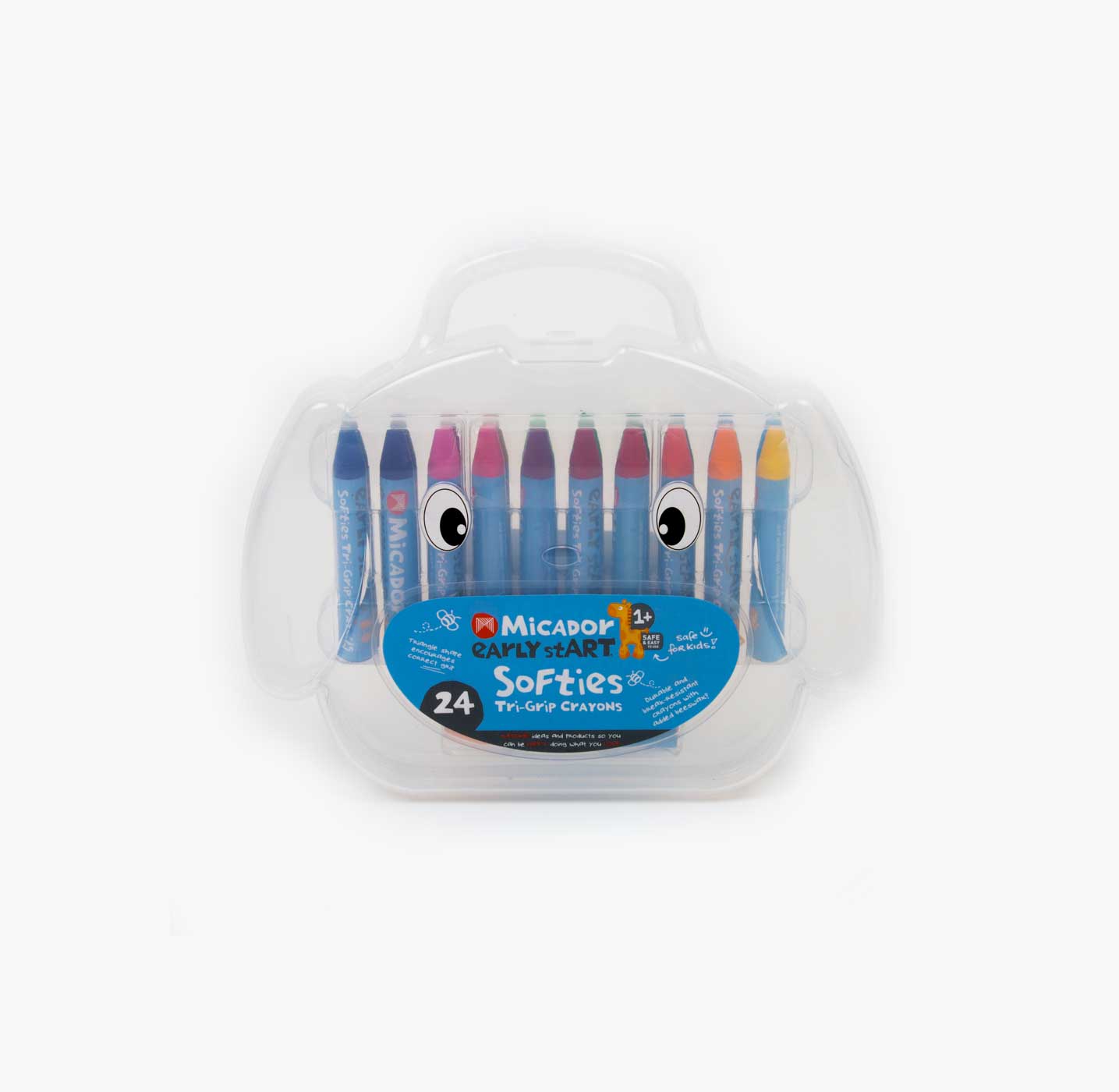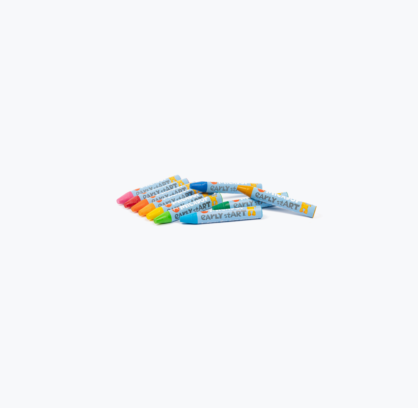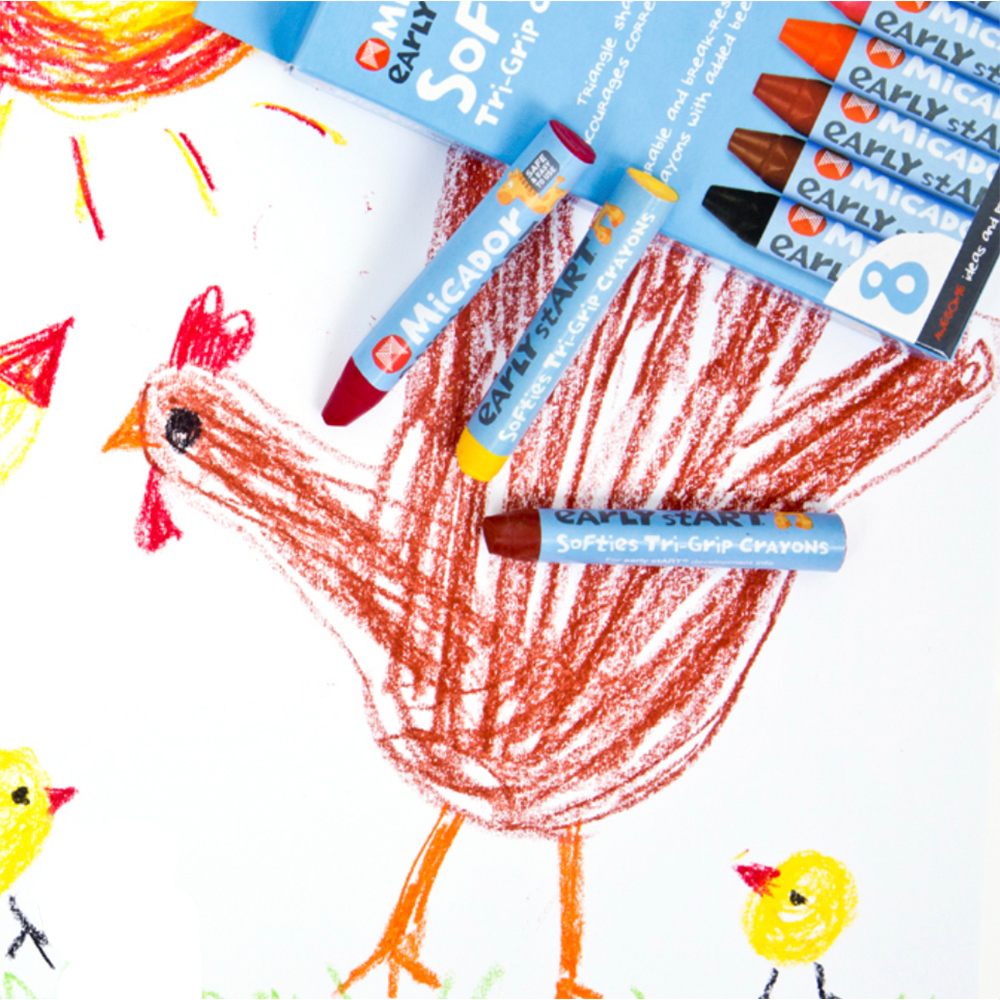 - Soft triangle crayons made with beeswax for easy colour lay-down and safety