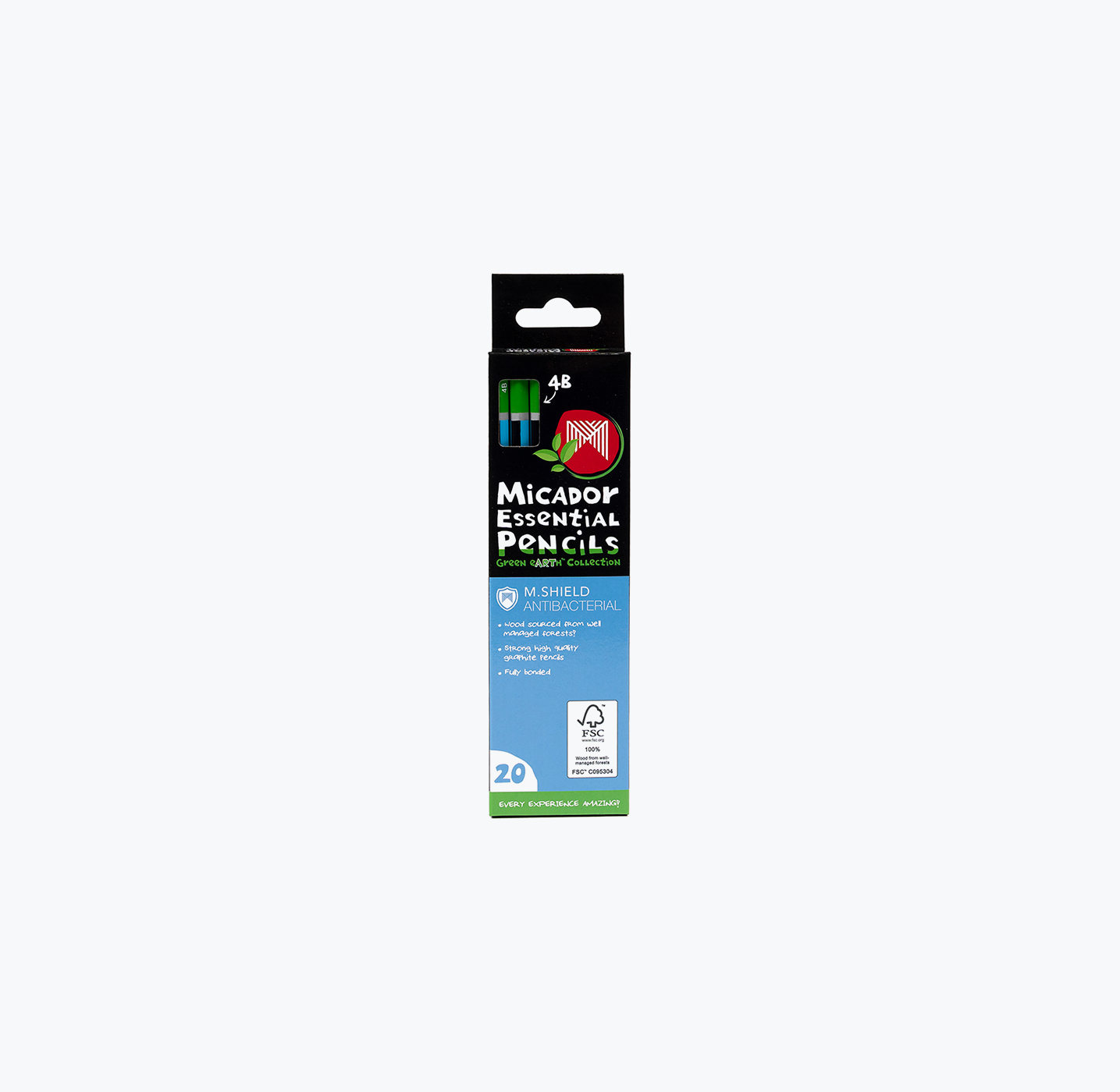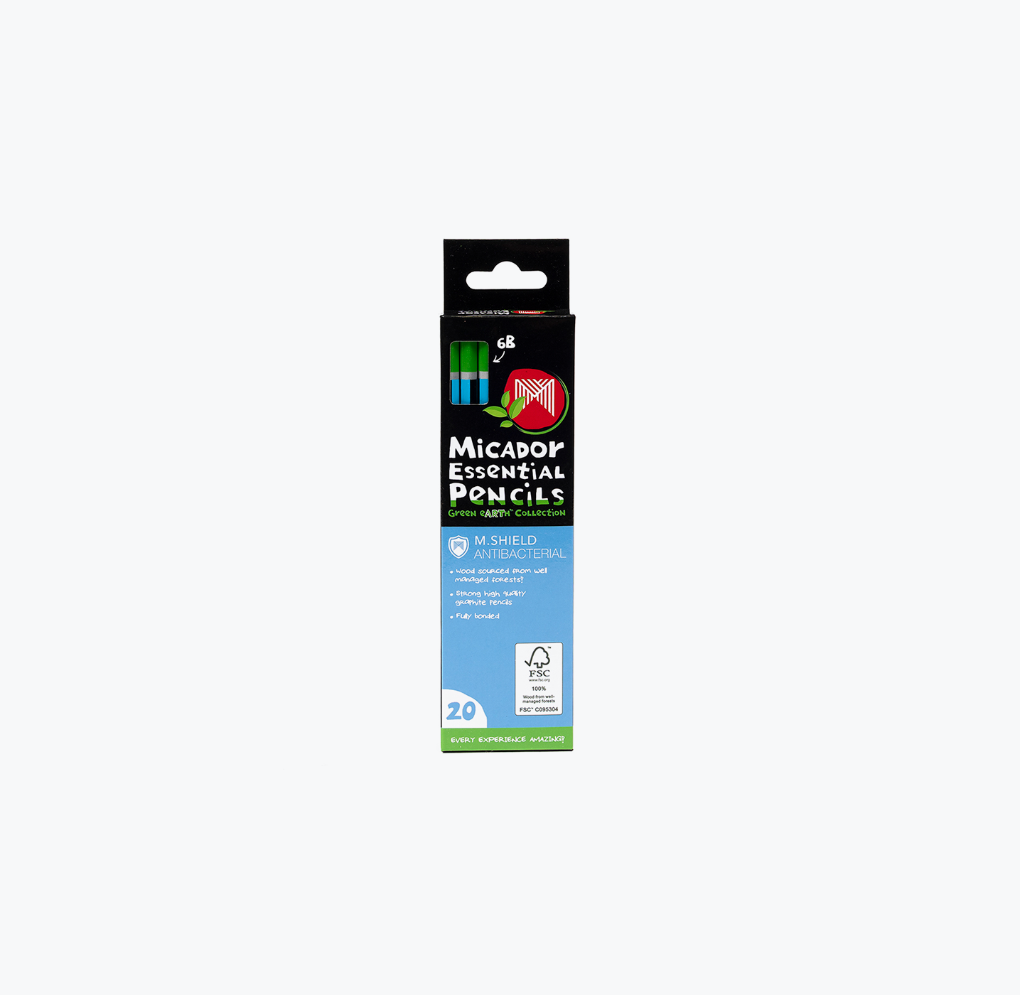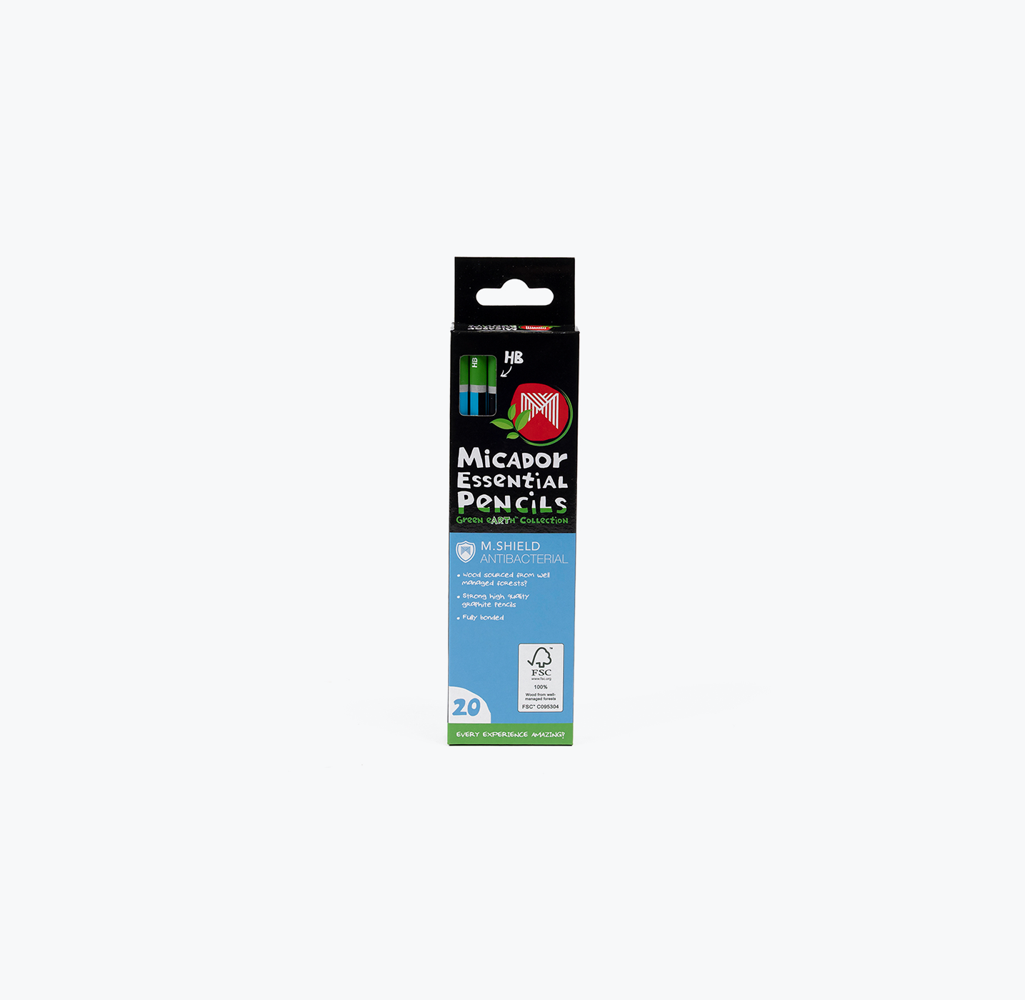 A classroom must-have. Essential Pencils are made with quality graphite for smooth lay down on paper when writing and sketching. Pencils are made with FSC™ 100% certified wood and have capped, green ends to signify they are part of Micador's green eARTh collection. Boasting reliable quality and excellent value, these pencils are trusted and used widely in schools. Made with M.SHIELD disinfectant additives proven to kill bacteria and available in multiple grades in packs of 20, Micador Essential Pencils are a school essential!