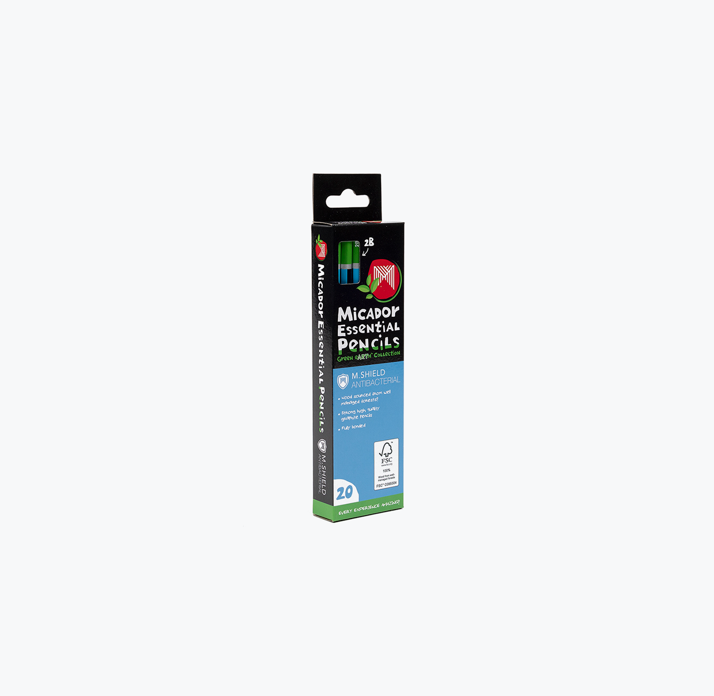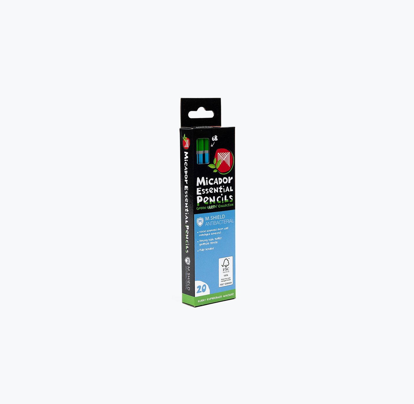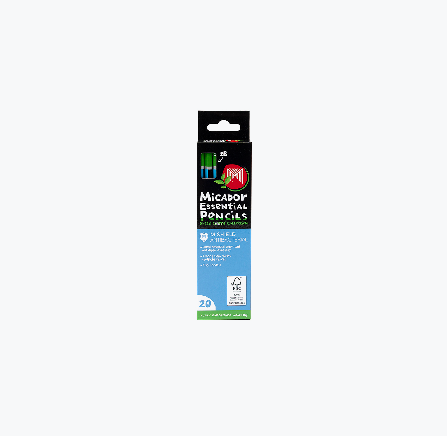 A classroom must-have. Essential Pencils are made with quality graphite for smooth lay down on paper when writing and sketching. Pencils are made with FSC™ 100% certified wood and have capped, green ends to signify they are part of Micador's green eARTh collection. Boasting reliable quality and excellent value, these pencils are trusted and used widely in schools. Made with M.SHIELD disinfectant additives proven to kill bacteria and available in multiple grades in packs of 20, Micador Essential Pencils are a school essential!