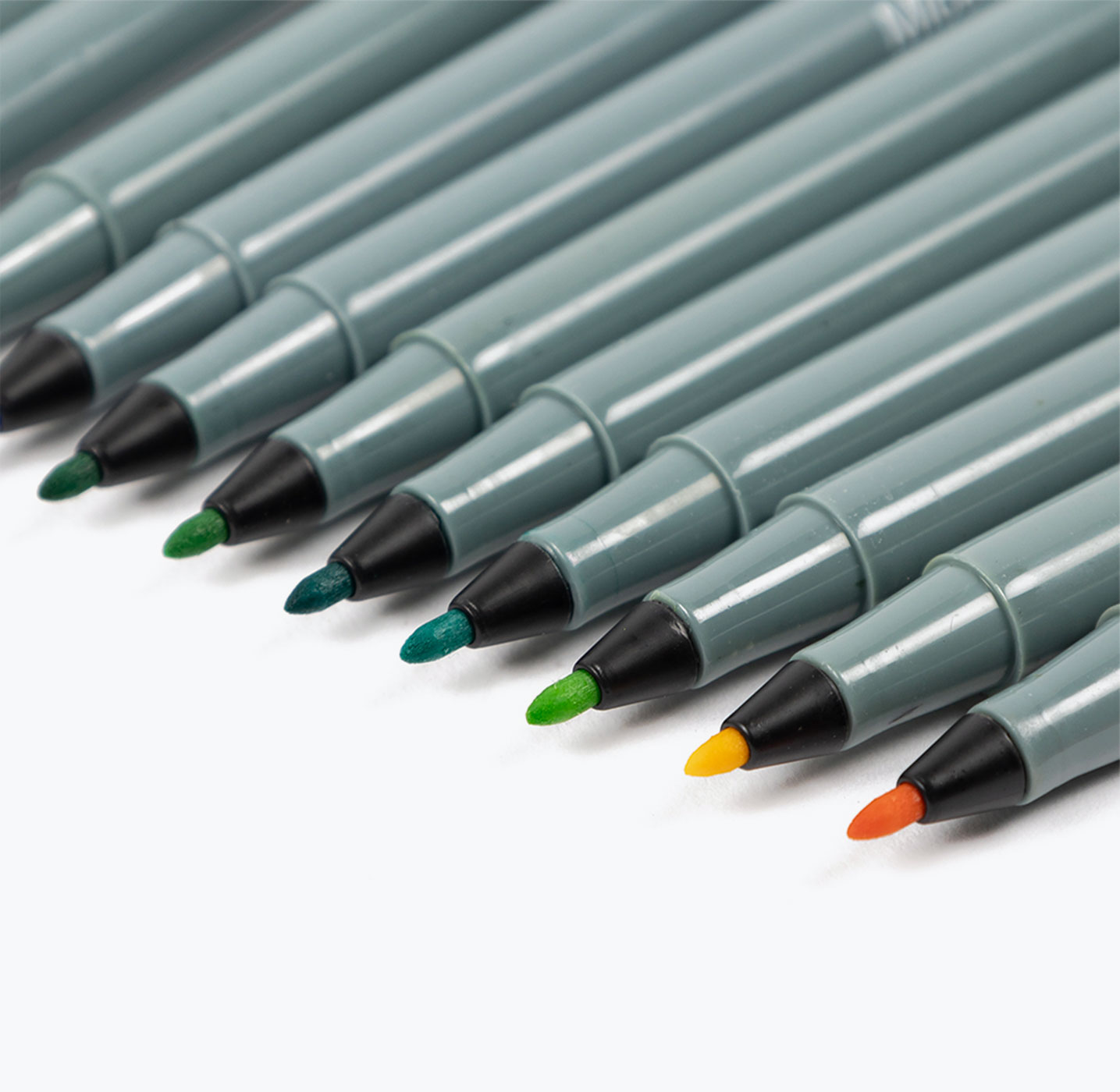 Markers made of 70% recycled plastic and packaging made of 60% recycled cardboard