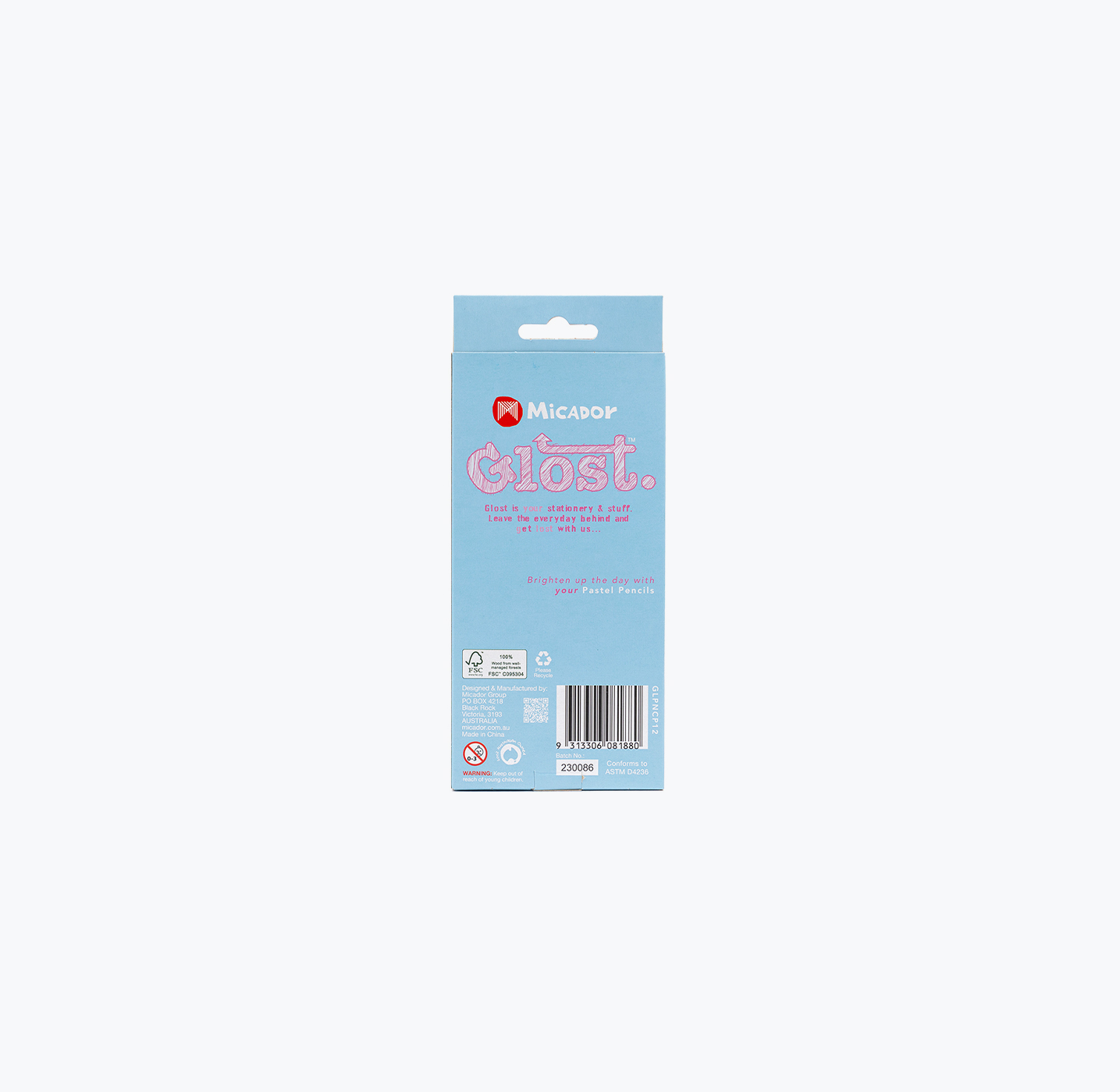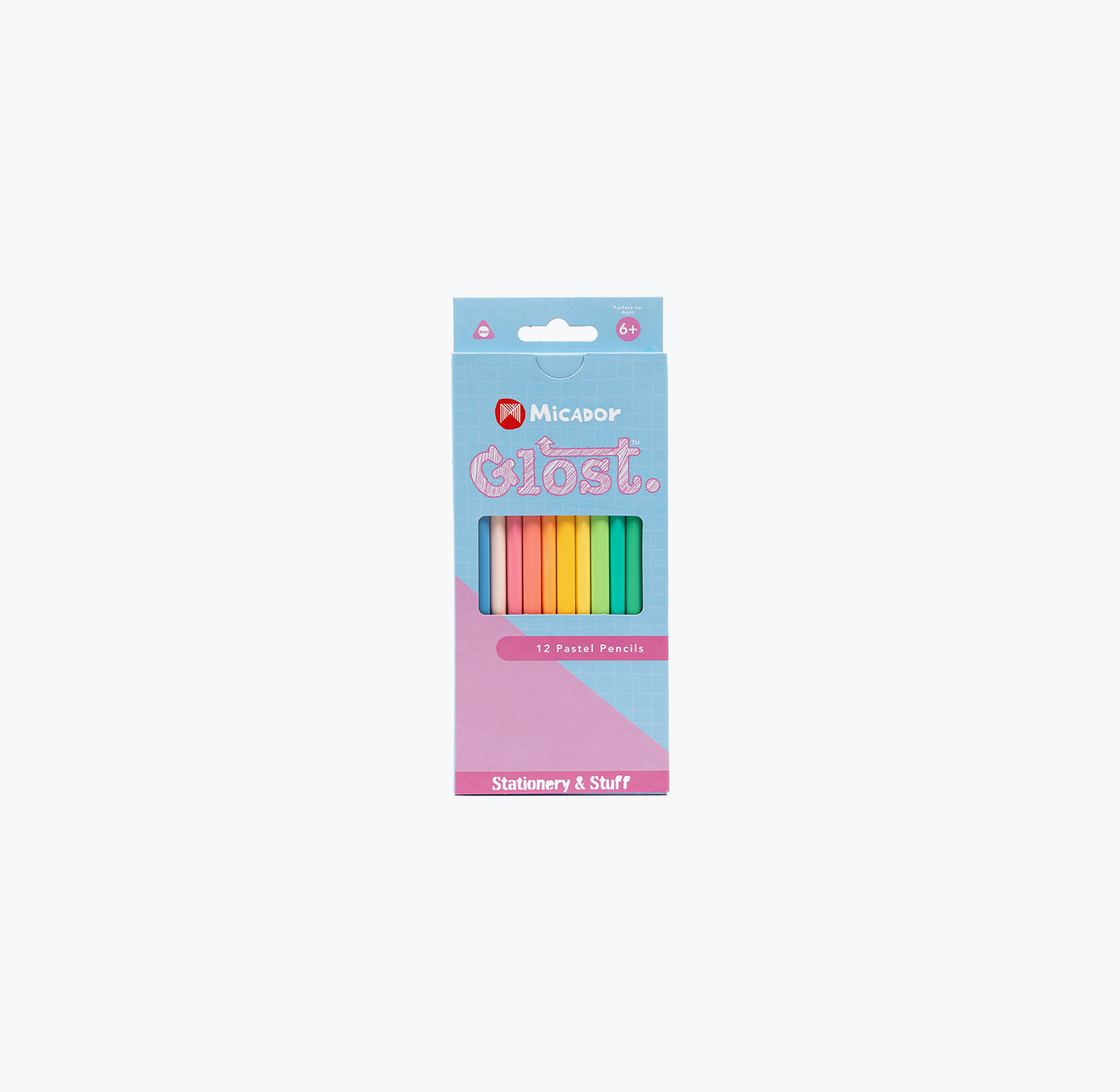 Pretty Glost Pastel Pencils put positivity onto paper! These gorgeous, double bonded pencils are ideal for drawing or colouring, and are made with quality binders for a smooth lay-down. Available in 12 perfect colours, they are strong and durable, and packaged in a FSC™ Mix certified cardboard box, making them positively purposeful.