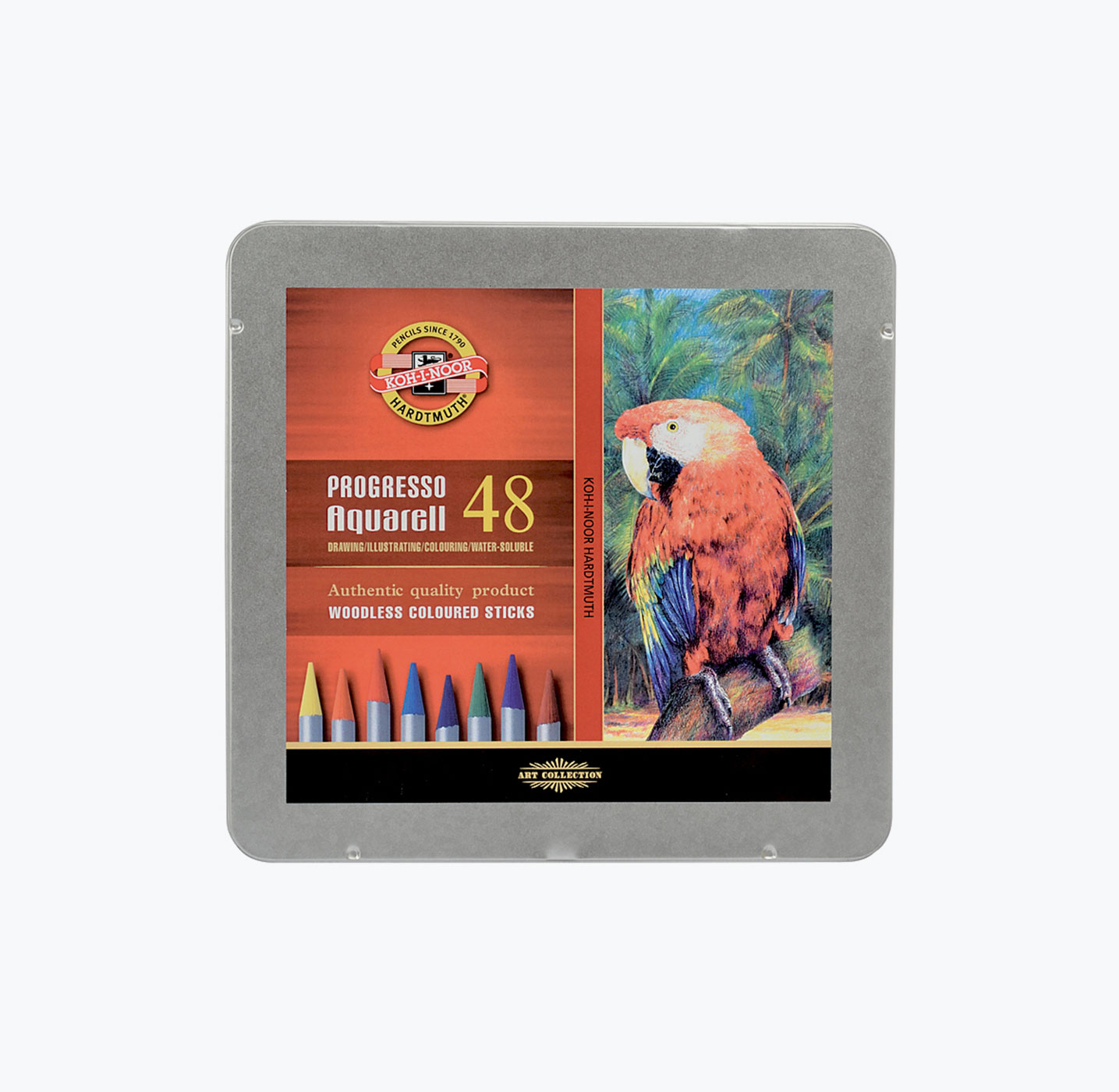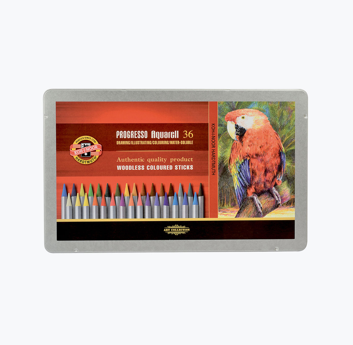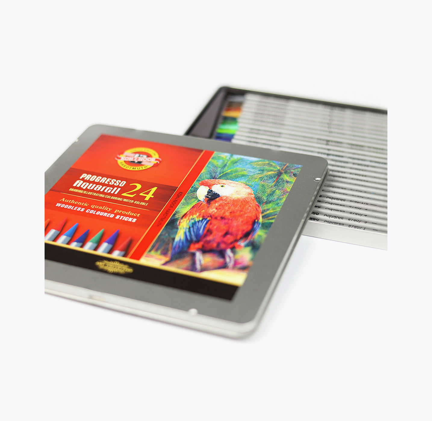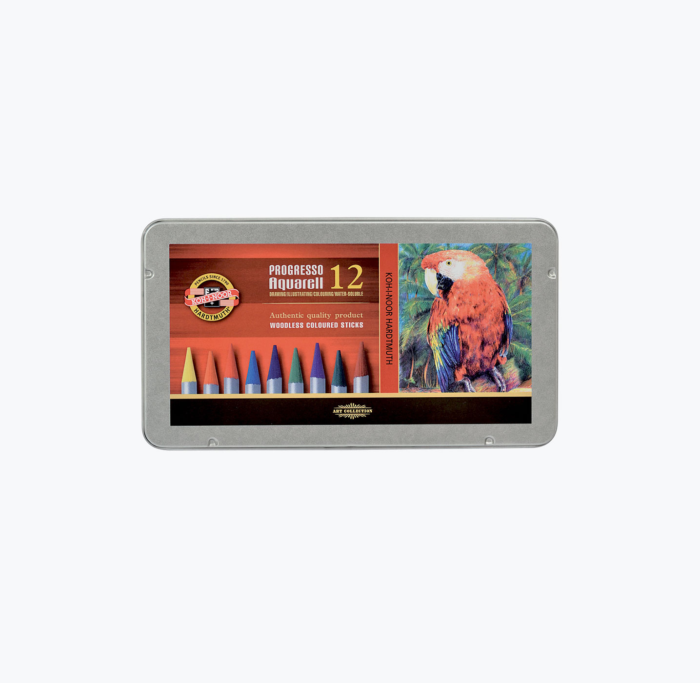 Woodless watersoluble pencils in a tin of 12 or 24 colours. Simply add water for seamless watercolour effects. High quality, rich pigments and good lightfast qualities offer stunning outcomes for artists that take your work to the next level.