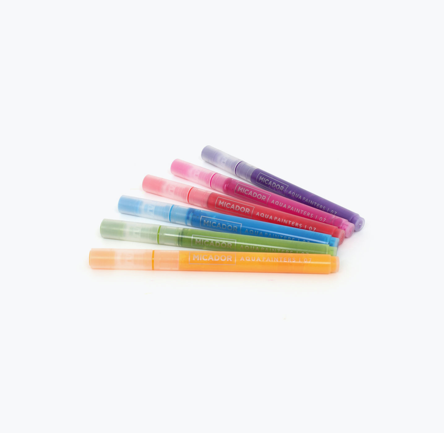These acid-free, water-based paint pens offer exquisite results and are ideal for developing layers over other mediums, including watercolour paint. With high coverage opaque colour that can be used on a variety of light and dark surfaces, AquaPainters are ideal for fashion and art students, hobby artists and designers.
