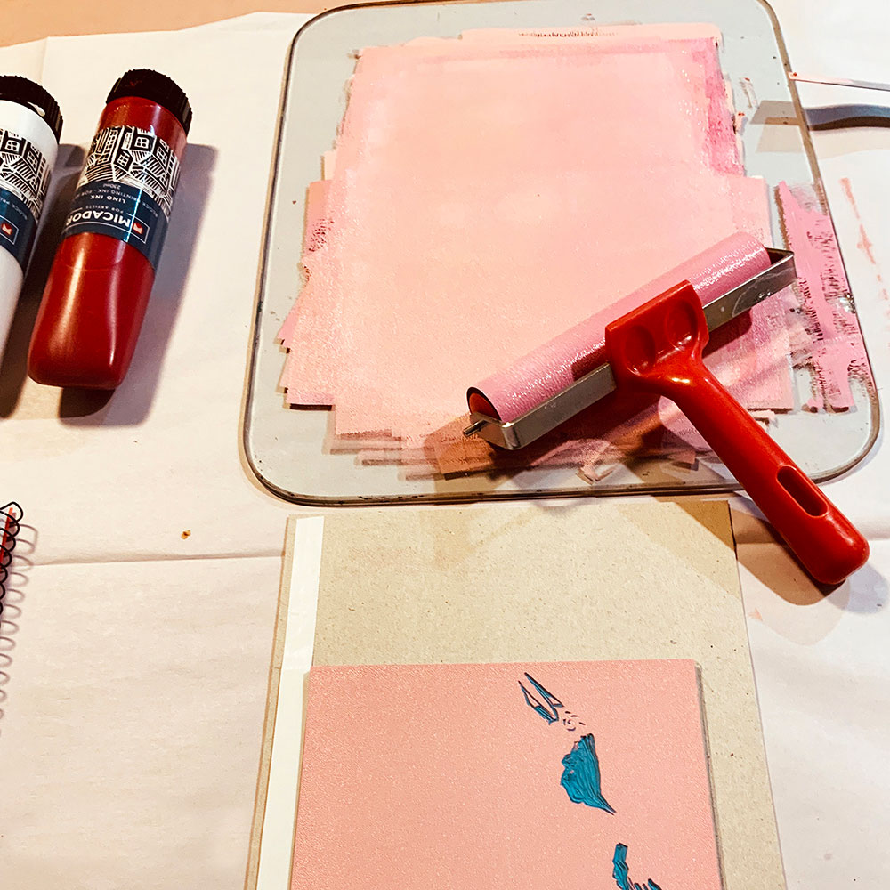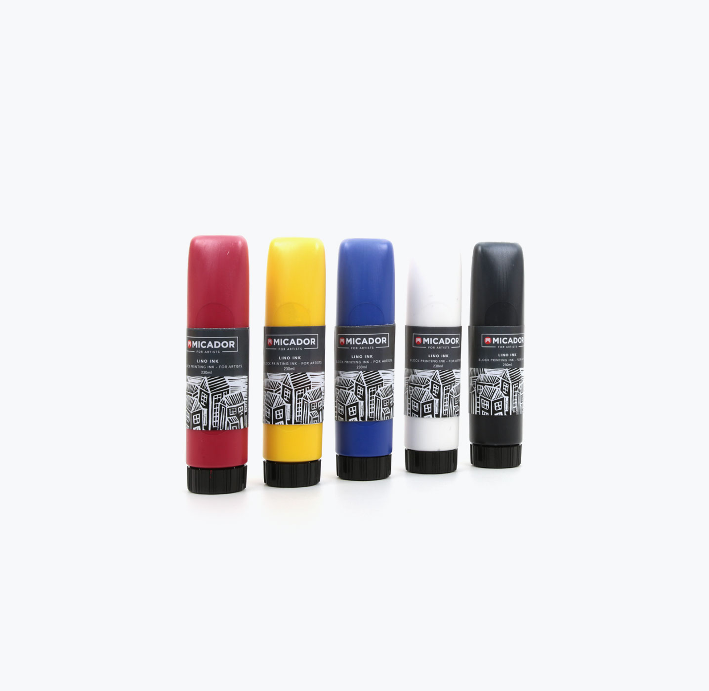 Lino ink is water-based and boasts perfect viscosity for use on a range of surfaces. Odourless and fast-drying, and available in 5 handy colours.