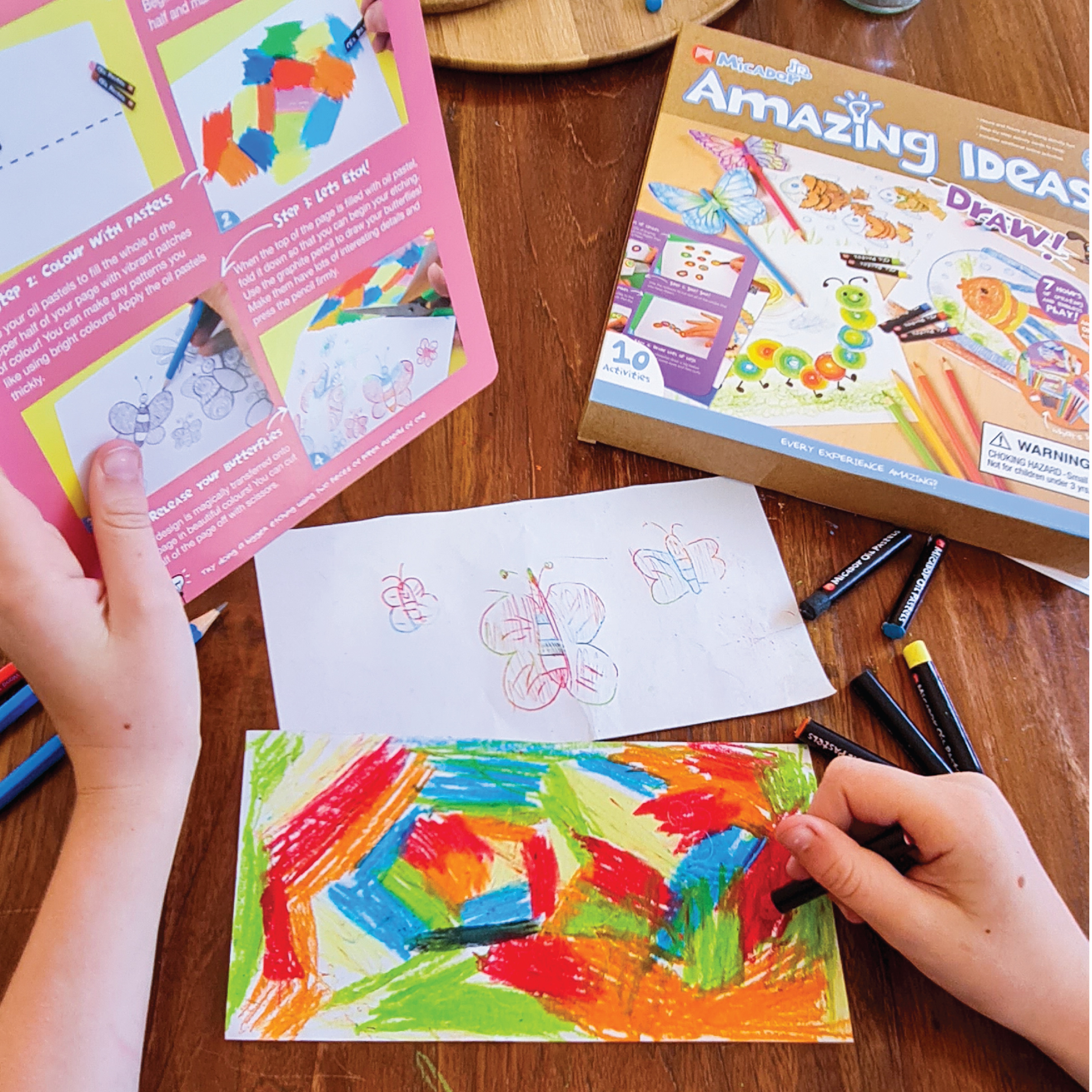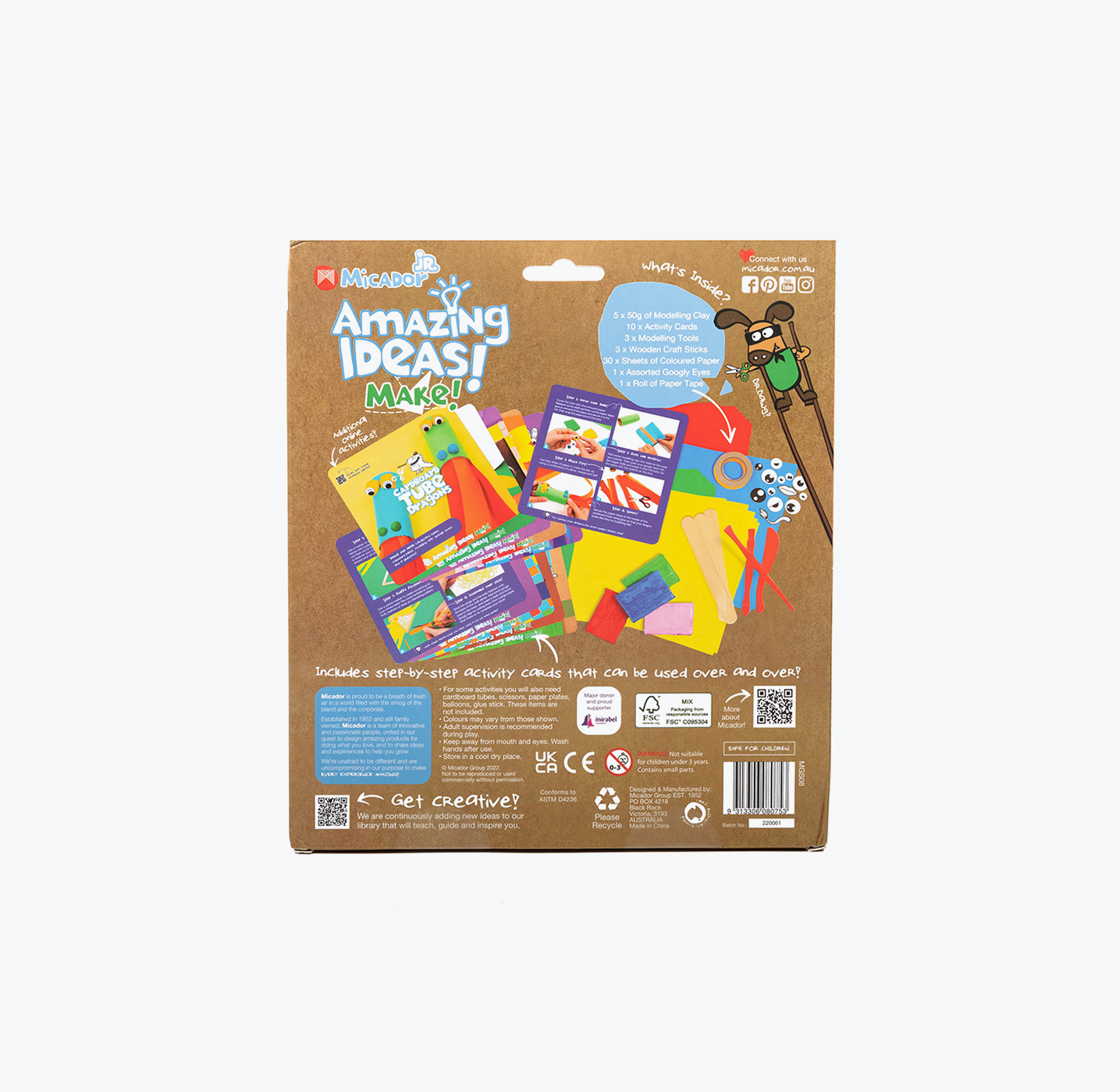 Encourage creativity, imagination and open-ended play with Micador jR. Amazing Ideas! Each pack enables children to develop their fine motor skills and cognitive processes with a range of age-appropriate activities and materials that excite, inspire and empower. Choose from Draw or Make varieties for 7 hours of creating and endless play! Includes activity cards and additional online activities for a unique, sensory experience.