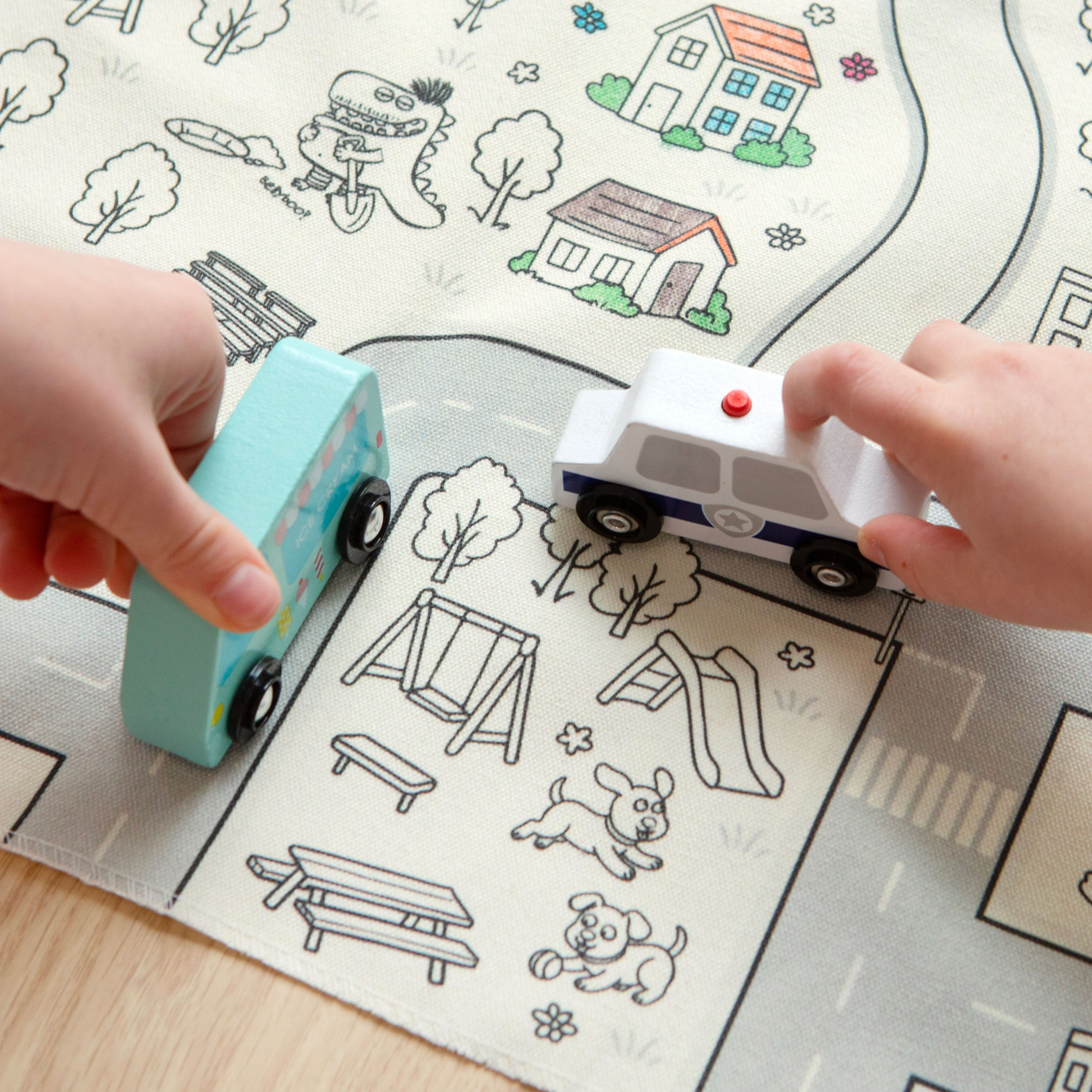 - Dual-purpose design - colour the streets, then bring them to life with toy cars and storytelling