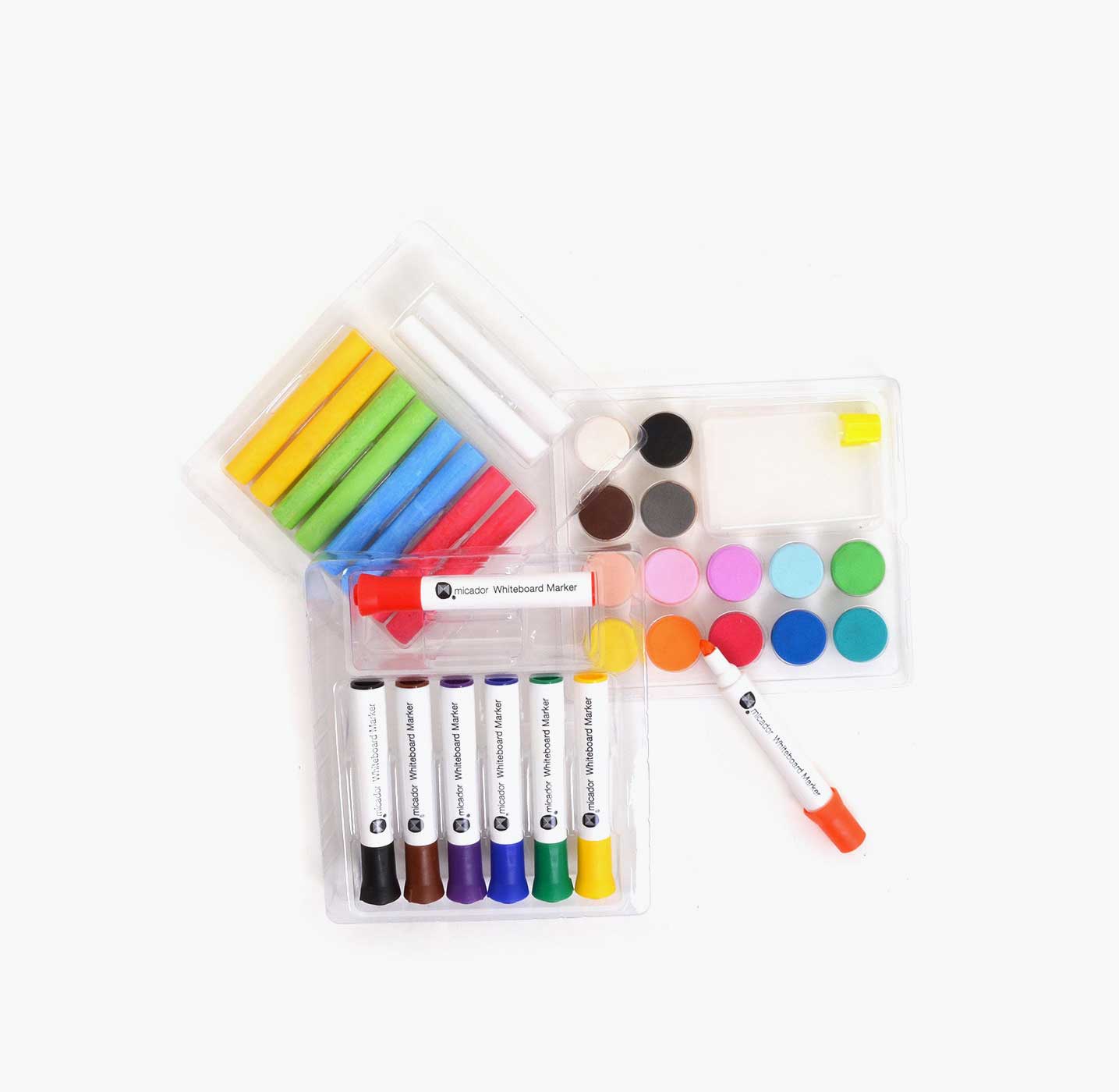 1 x whiteboard, 8 x whiteboard markers, 1 x sponge eraser, 10 x sheets white A4 paper
