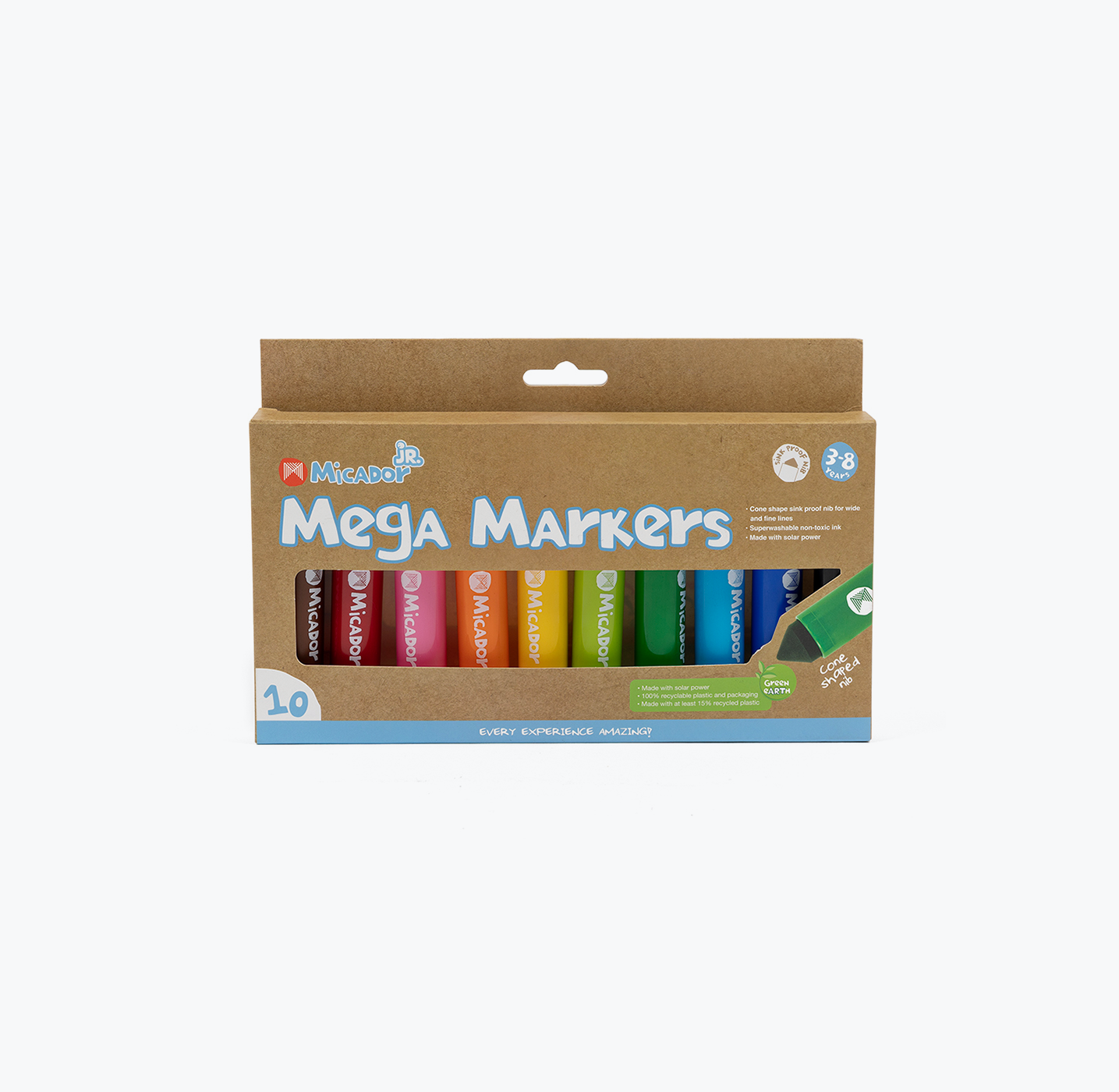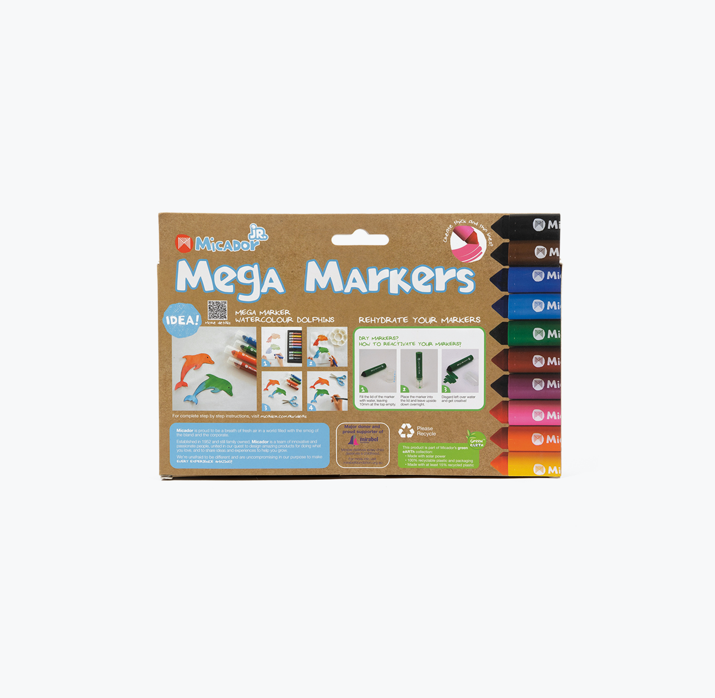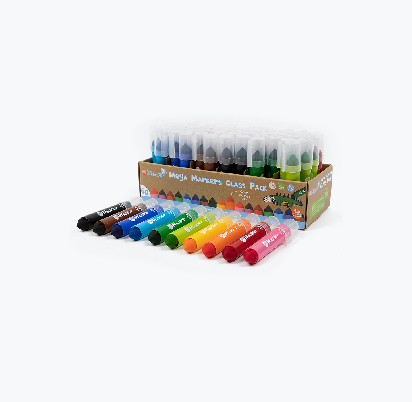 These practical, safe and easy-to-use markers are perfect for little hands. The thick barrel suits a child’s full handed grip and the cone-shaped, indestructible nib allows children to draw thick and thin lines. The ink is water-based and super-washable from skin and most fabrics with lukewarm water, plus dry markers can be easily re-hydrated by dipping the nib in water! With no end caps and large lids for safety, they are suitable for children 3-8 years. Available in packs of 10 or a handy class pack of 60, perfect for inspiring creativity at home, at parties or in the classroom!