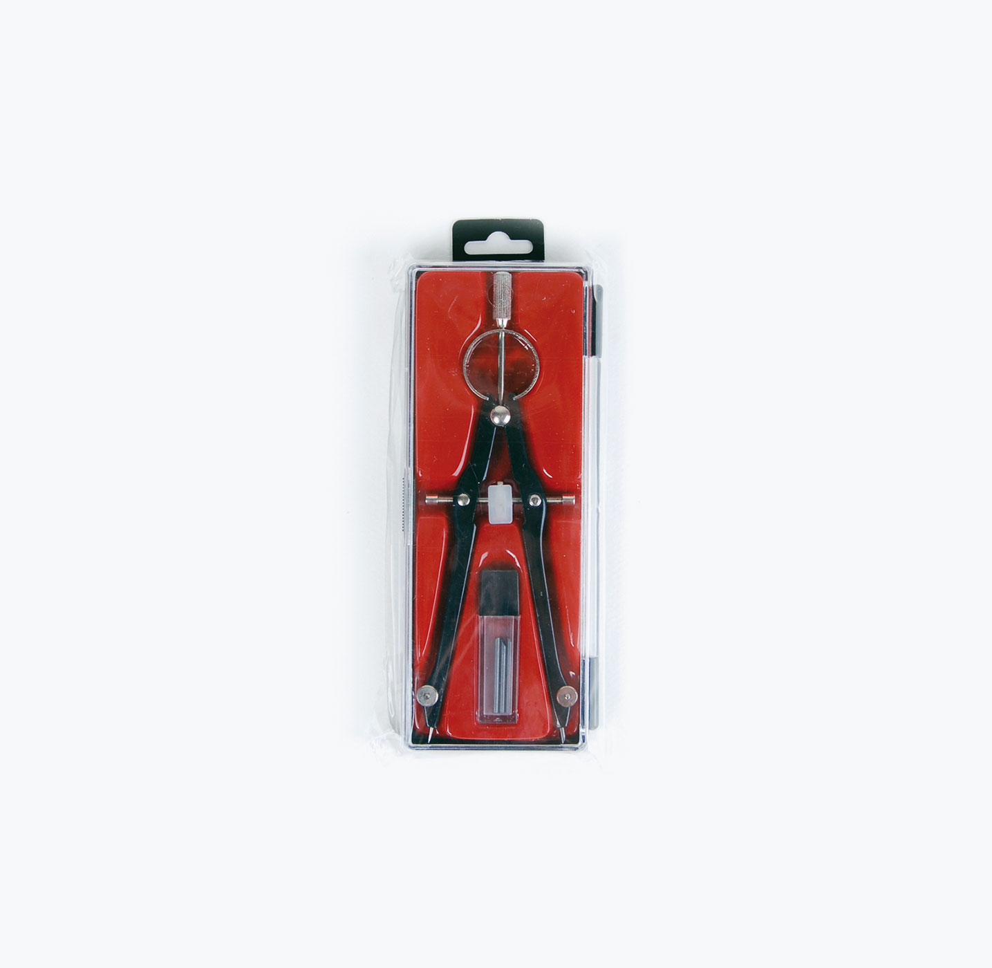 Sturdy compass with central winder and adjustable point. Includes spare leads for added convenience. A must-have for Back to School.