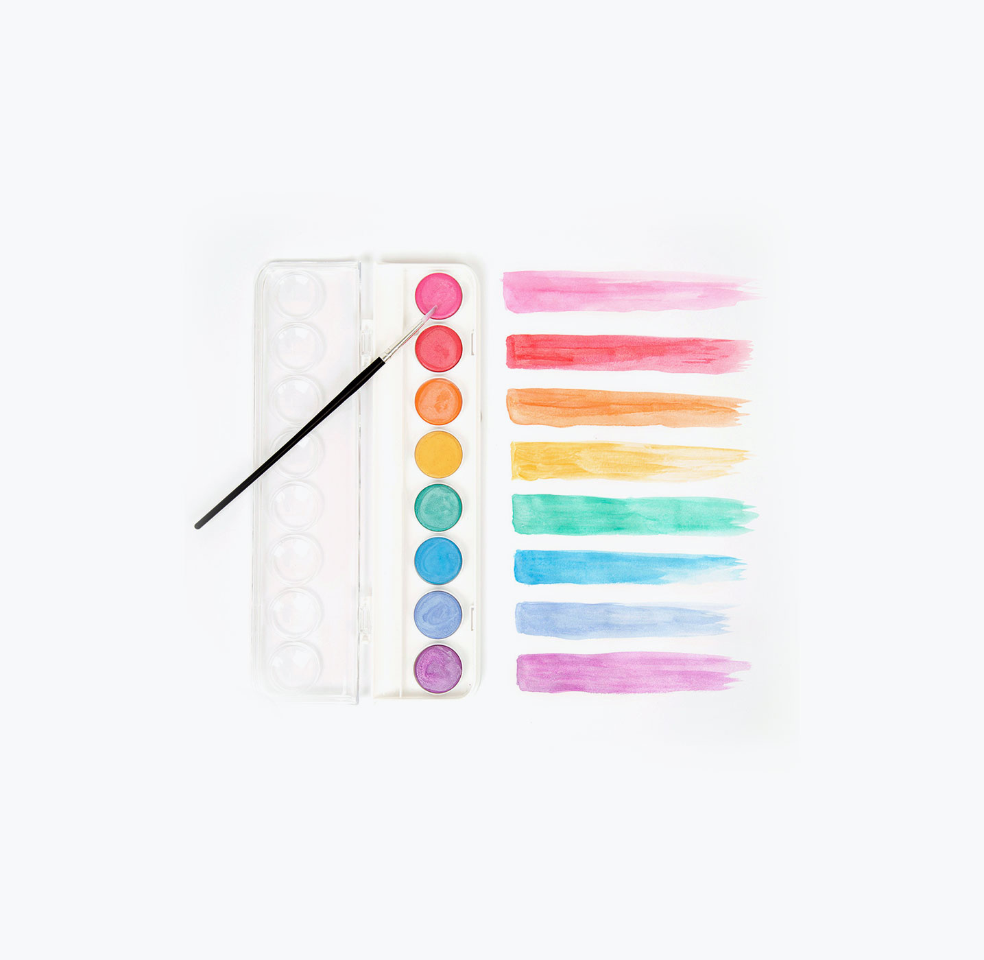 Metallic watercolour paint that shimmers on both black and white paper. High quality pigments for vibrant colours. Sturdy plastic tray comes with a paintbrush for convenience and snap-shut lid doubles as a palette. Paint is washable and low-mess.
