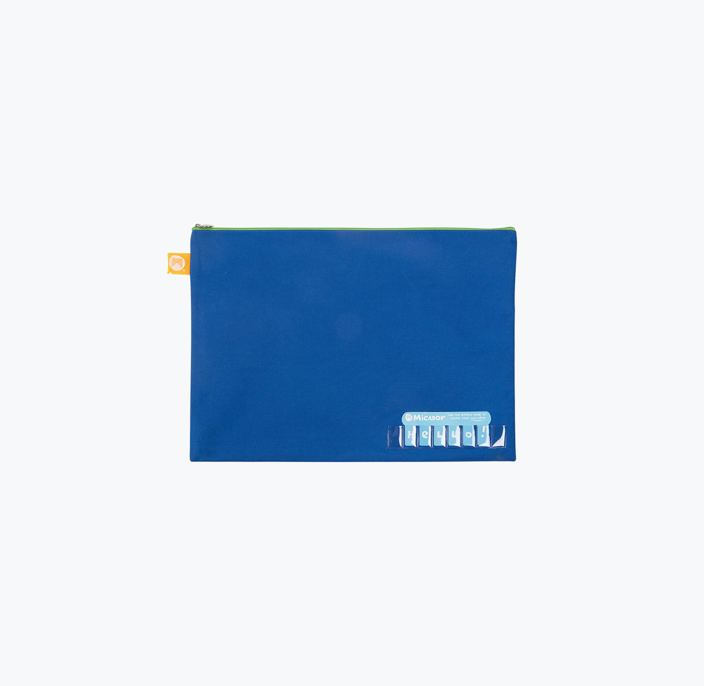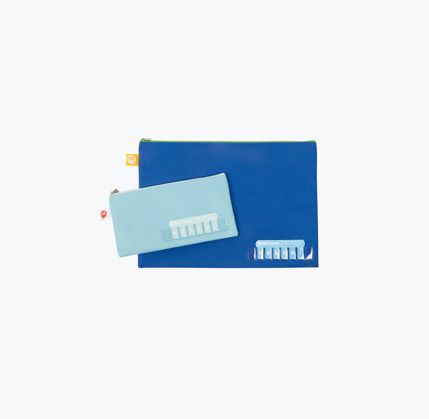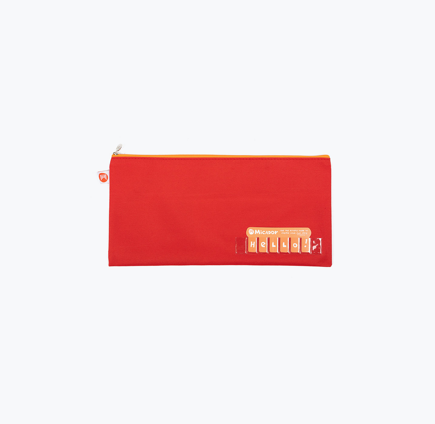 - Brightly coloured pencil cases with clear pocket name holder