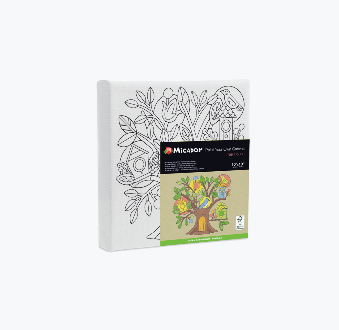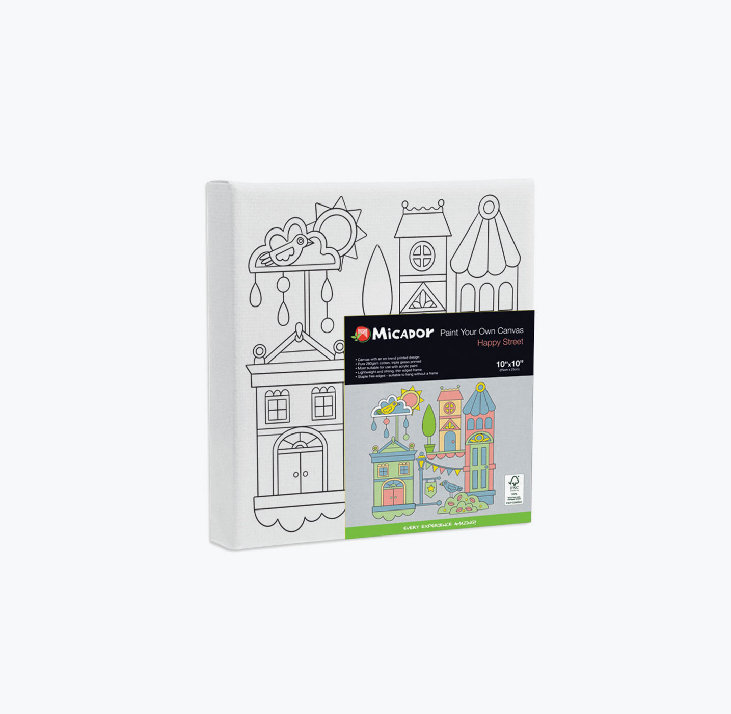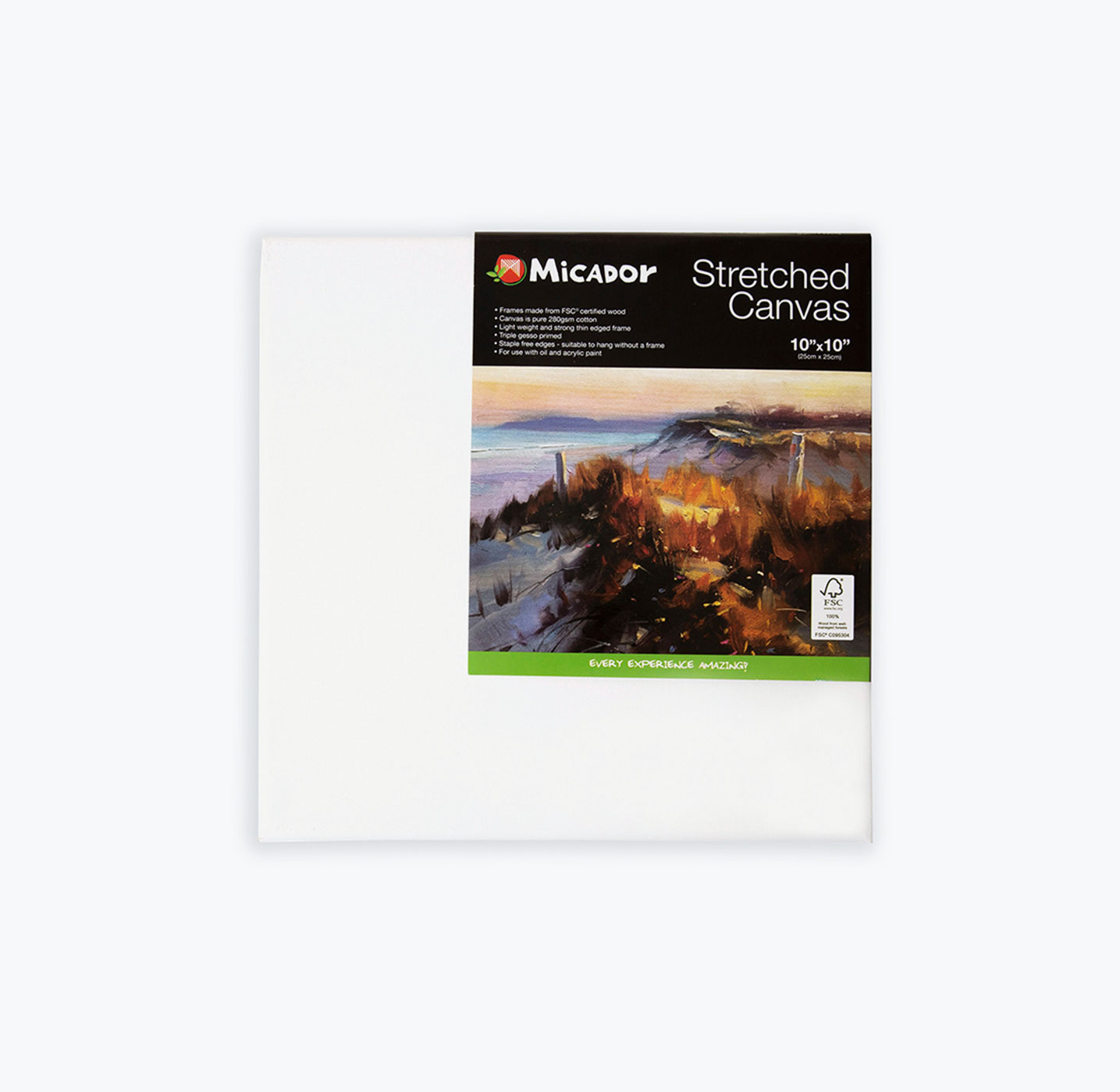Unleash your creativity with Micador Paint Your Own Canvas. The printed canvas is primed and ready to be painted with acrylic paint. A great gifting idea or perfect for emerging artists just starting out. Made of pure 280gsm cotton, the canvas is lightweight, strong and ready to hang without a frame.