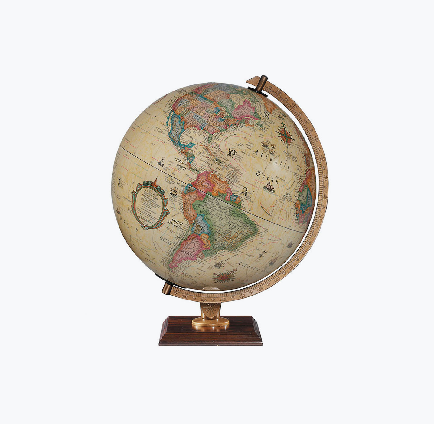 - Beautifully and traditionally styled with a hardwood base and die cast semi-meridian