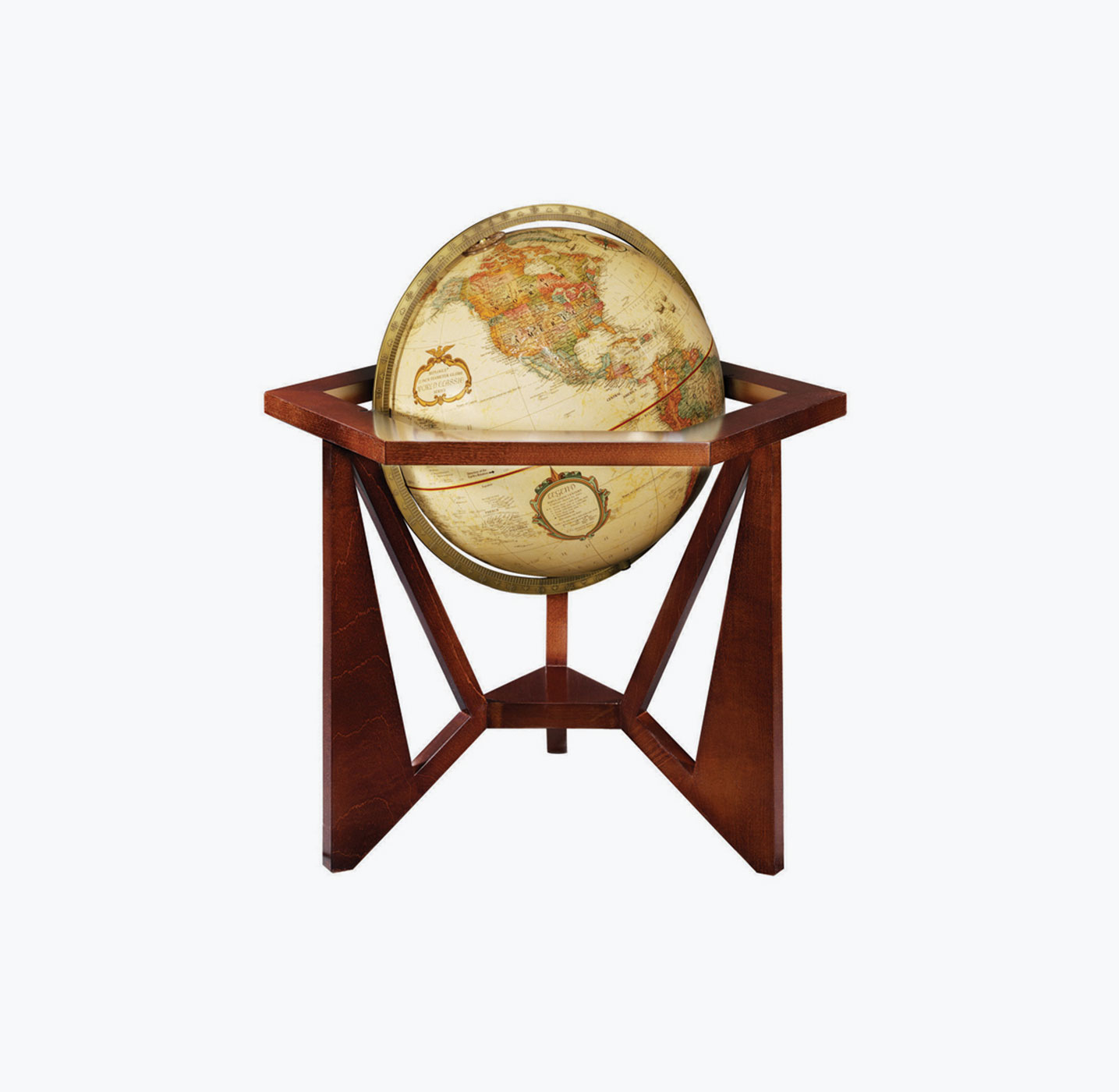 A gorgeous brass and black metal base is the foundation upon which this stately antique globe is built. A classy desktop accessory that is as much a work of art as it is educational tool or special gift for adventure lovers.