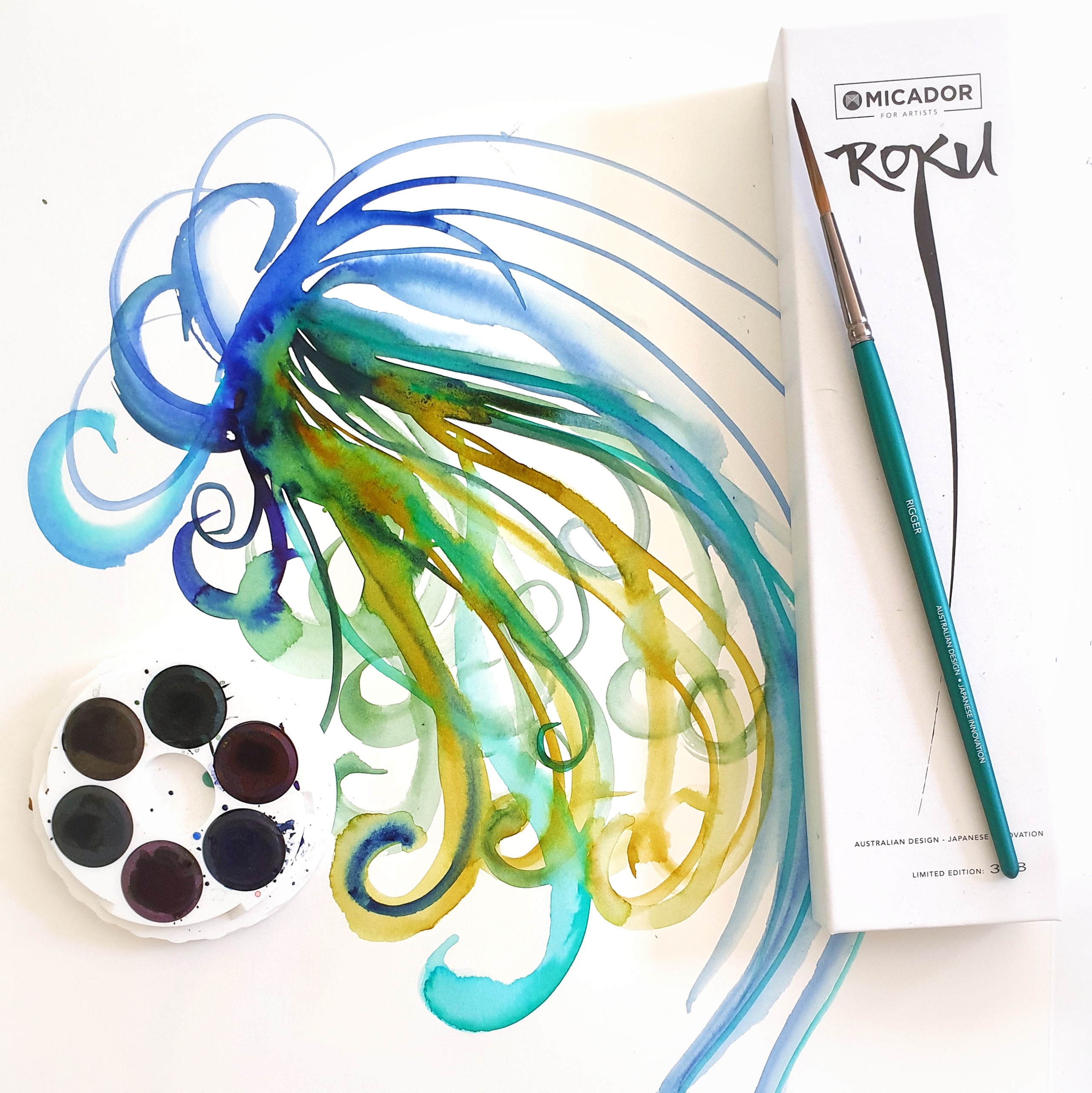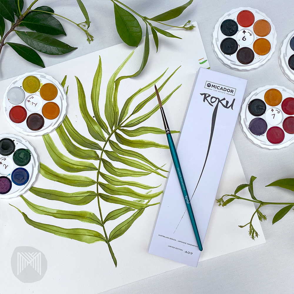 On a quest to make the perfect watercolour brush, the owner of Micador and his family travelled to Kyoto, to collaborate with our Japanese brush partner of many decades. Roku was born. One perfect brush. One size. One shape. Roku features our Roku Filament, engineered to outperform Kolinsky Sable while being vegan and cruelty free. The brush has a smooth release, fine point, easy control and extreme durability, tested to maintain its shape after 15,000 brush strokes. Perfect design - perfect brush.