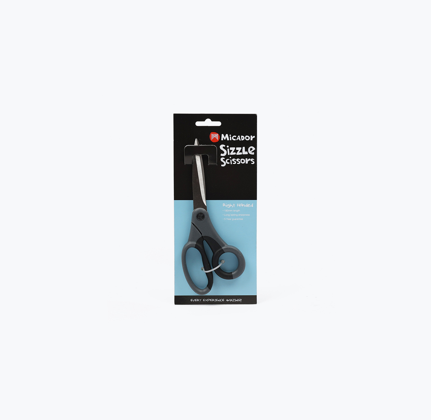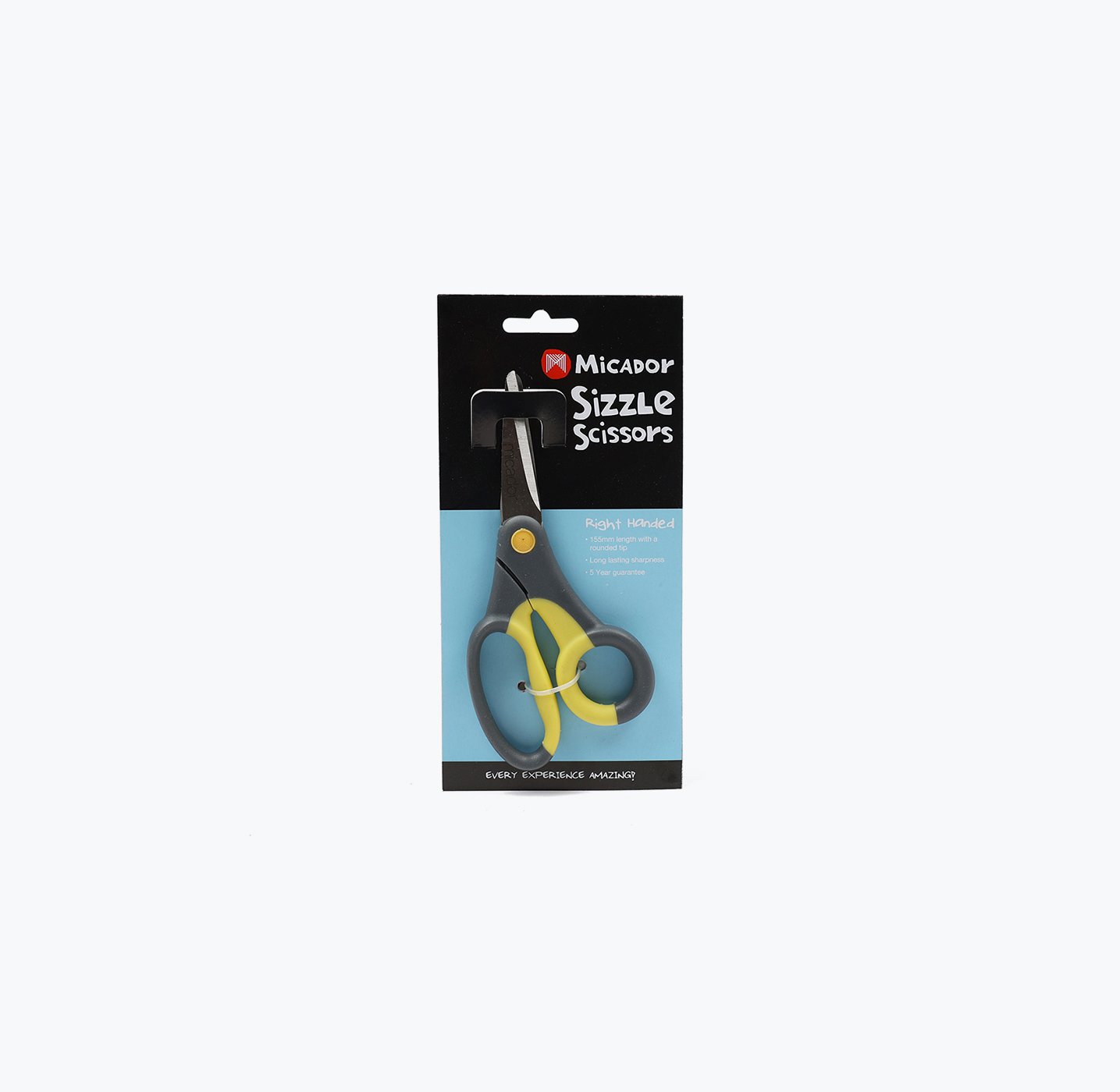 - Sizzling soft touch scissors, great for school, with a five year guarantee