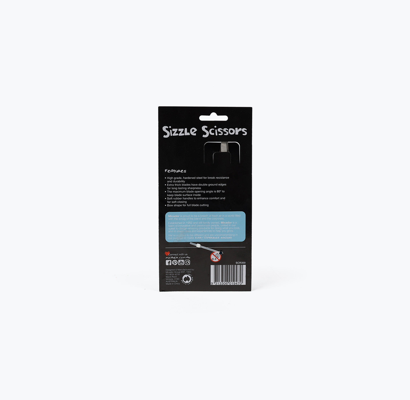 Soft touch Sizzle Scissors are almost too hot to handle! Available in left or right handed styles and with high quality steel blades for long-lasting sharpness, these scissors are a school essential. Features a correct bow shape for full length cutting and rounded ends for safety. Unique, ergonomical design provides comfort, while looking great too.