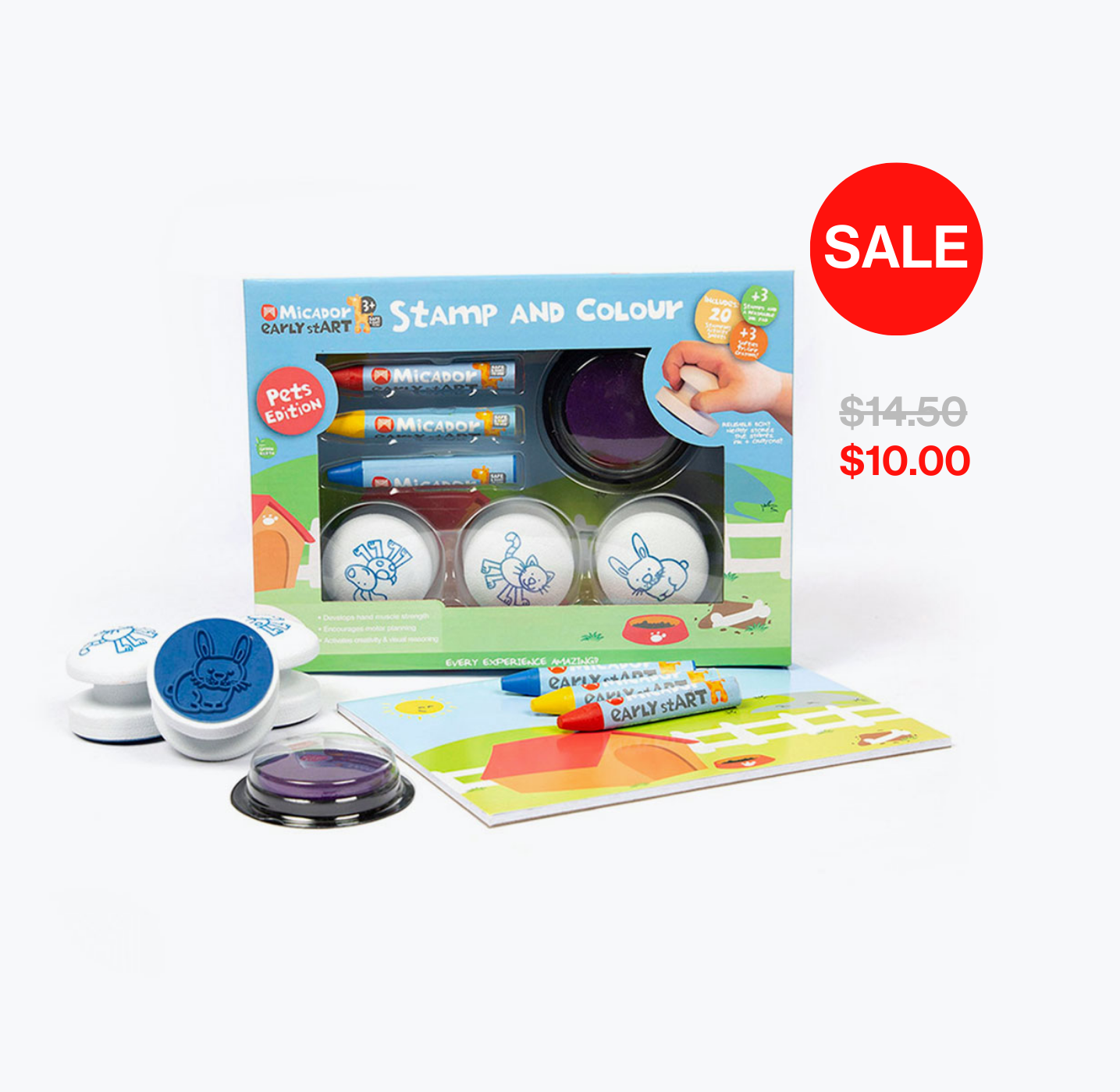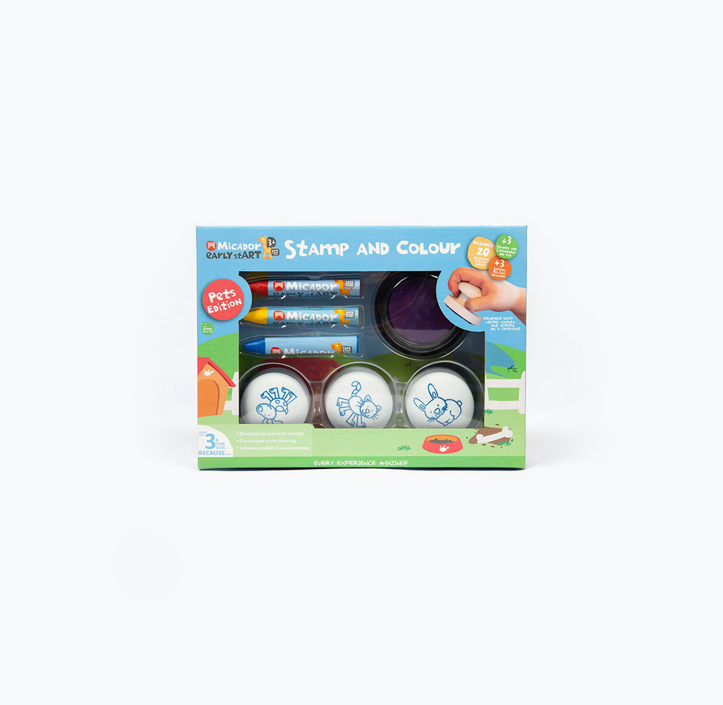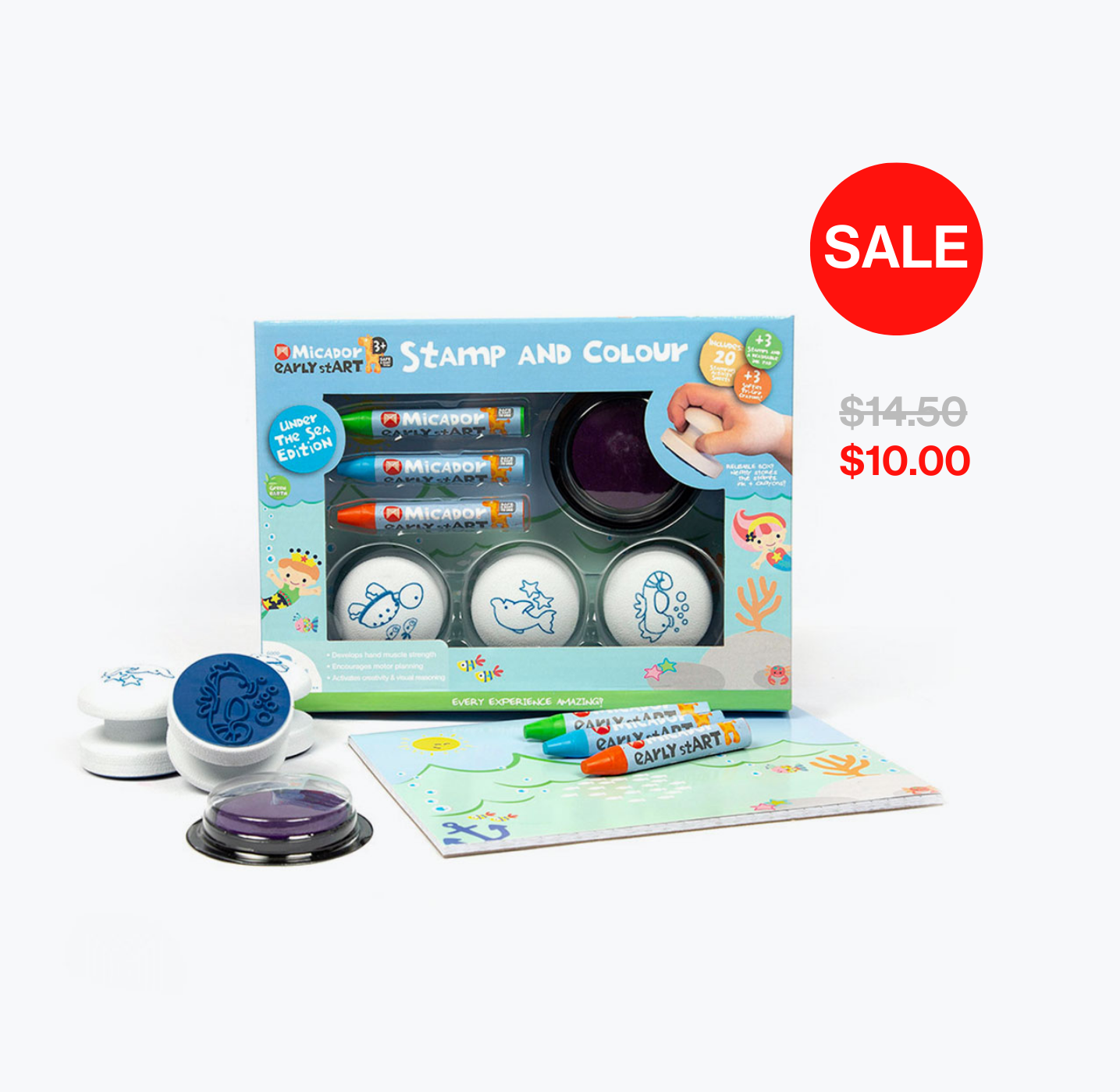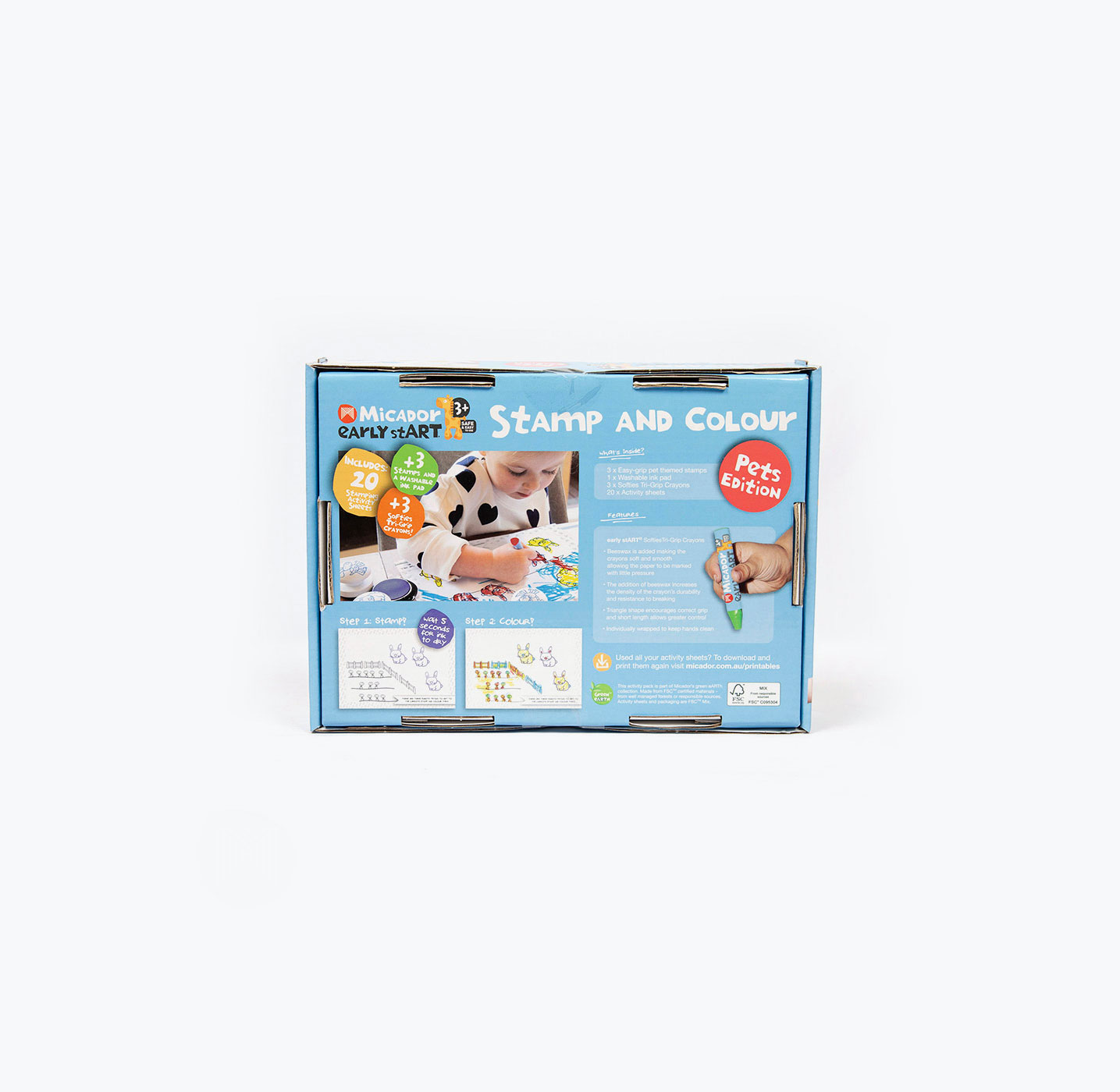 Stamp, colour, create and play with early stART Stamp and Colour! Available in Pets and Under the Sea editions, these cute and compact sets support early childhood development by encouraging fine motor skills, imagination and critical thinking. The activity is easy for parents and educators to assist with children's engagement, and it offers versatility in learning objectives, including personal expression and creative exploration. Suitable for children from 3 years, the stamps and crayons are easy to grip in little hands.