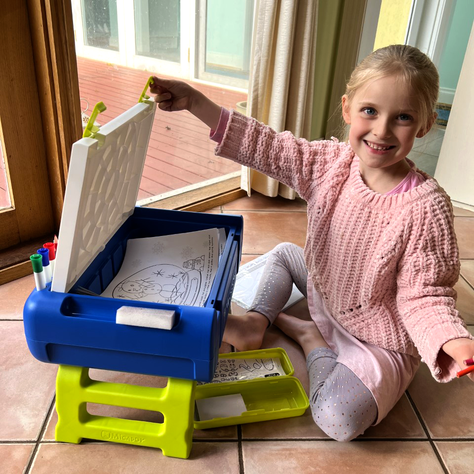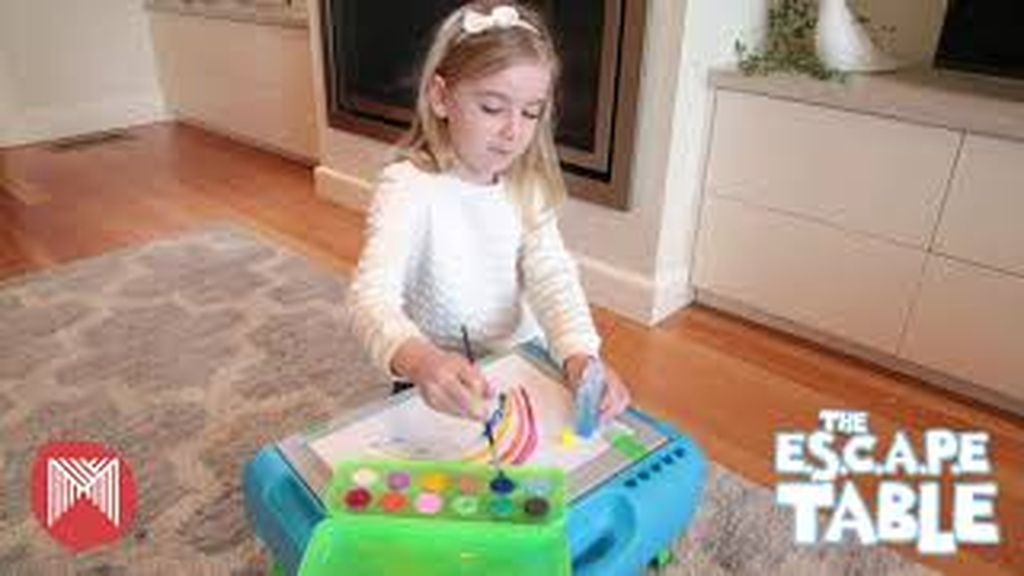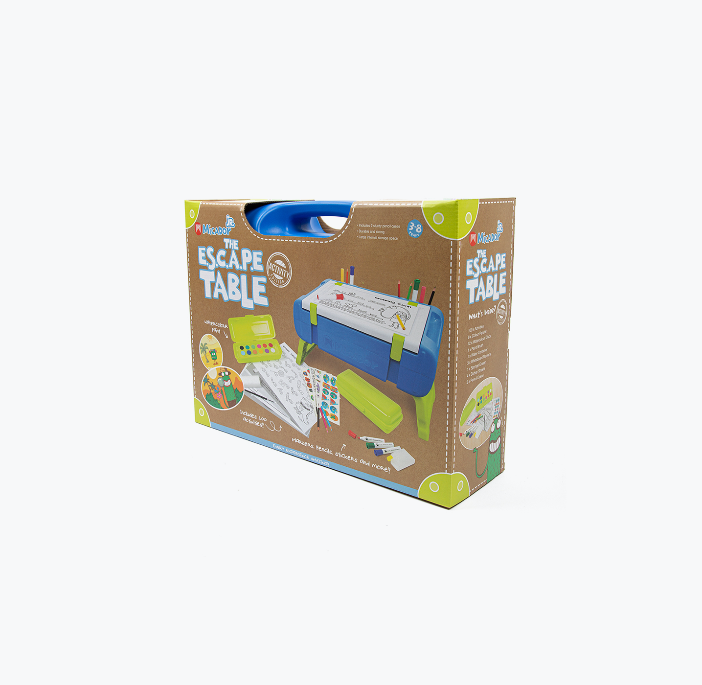 - The E.S.C.A.P.E Table – Activity Edition folds away into a lightweight carry case with storage drawers and compartments to safely transport and store the included art materials