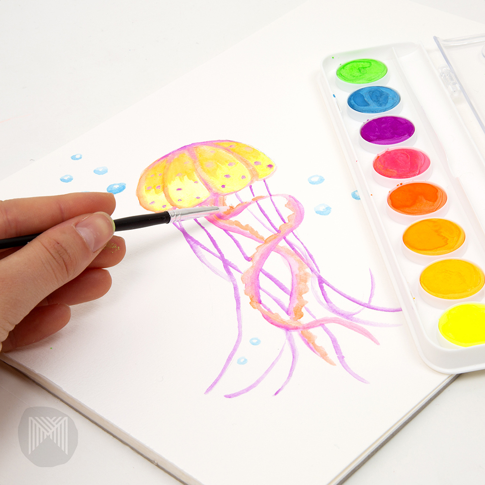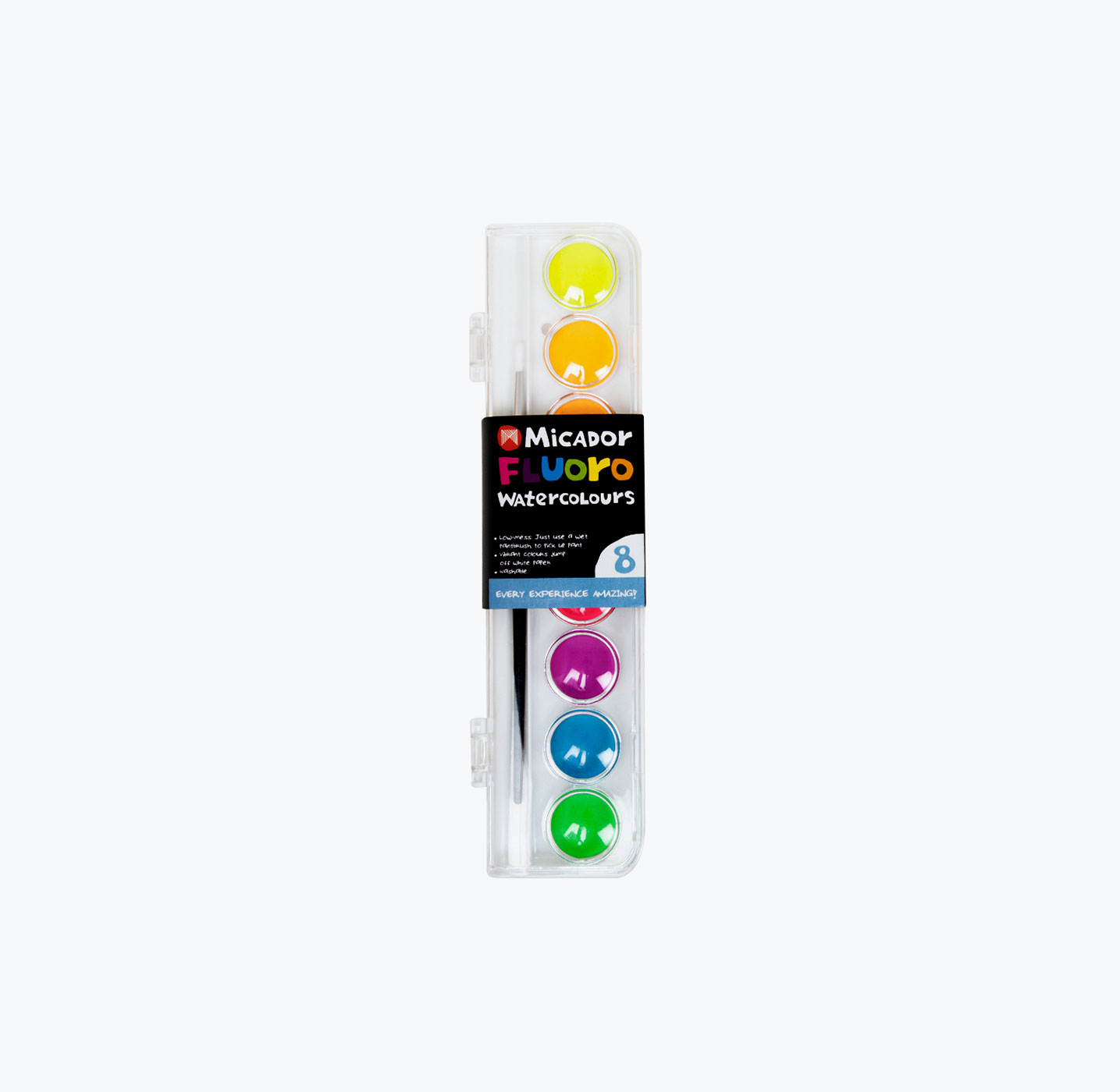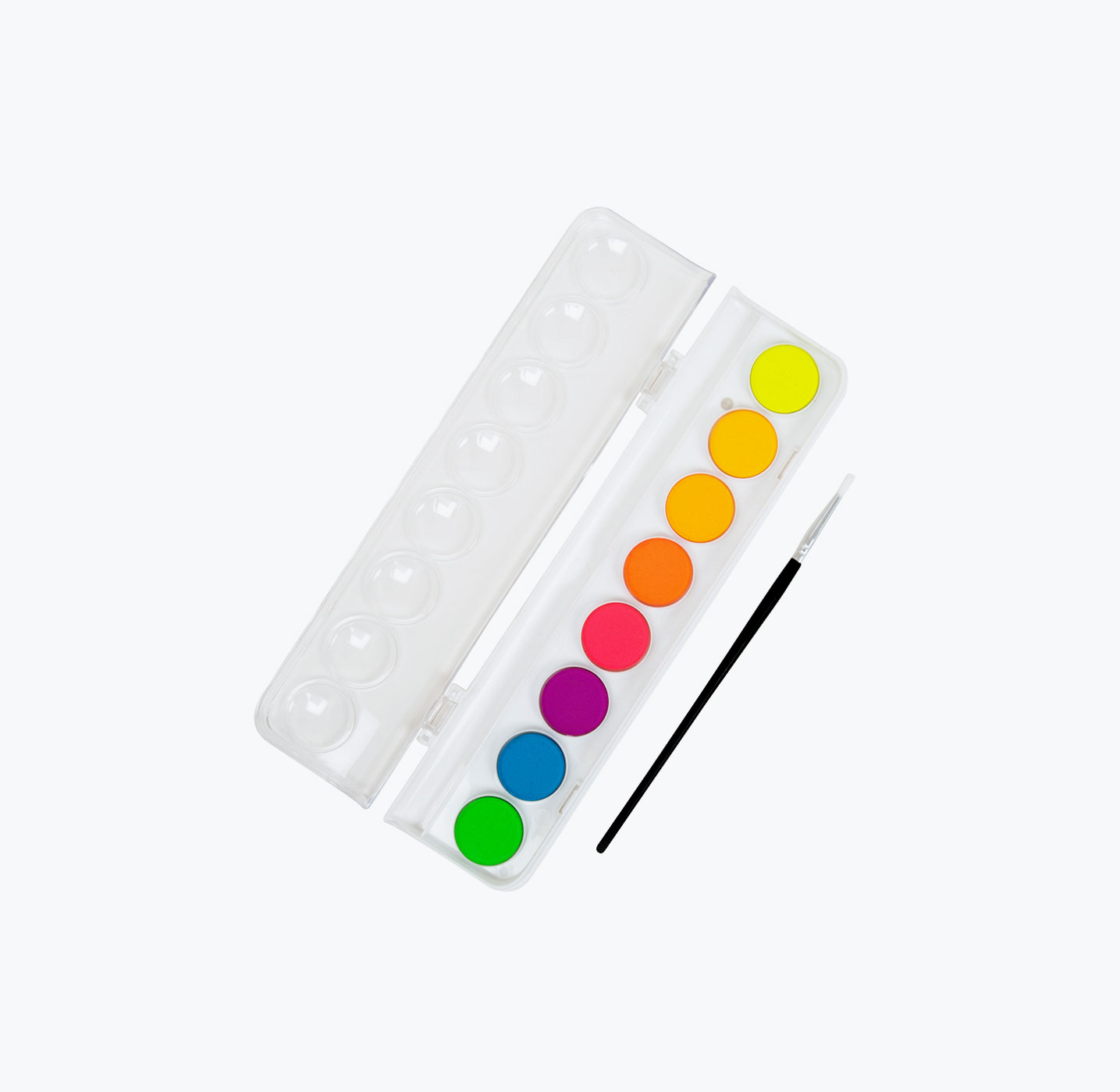 - 8 discs of brightly coloured fluorescent watercolour paint