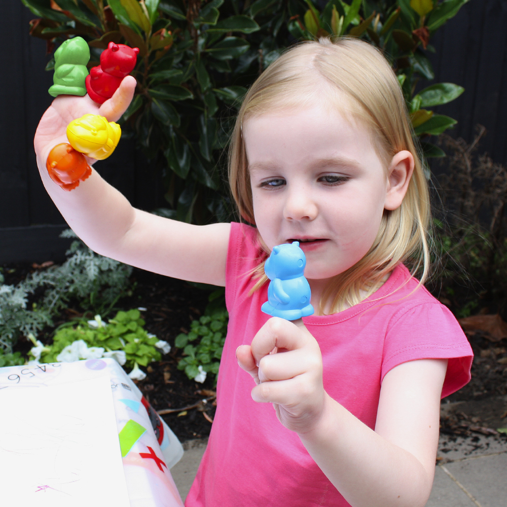 - Crayons double as fun finger puppets, try drawing with them while they're on your fingers!